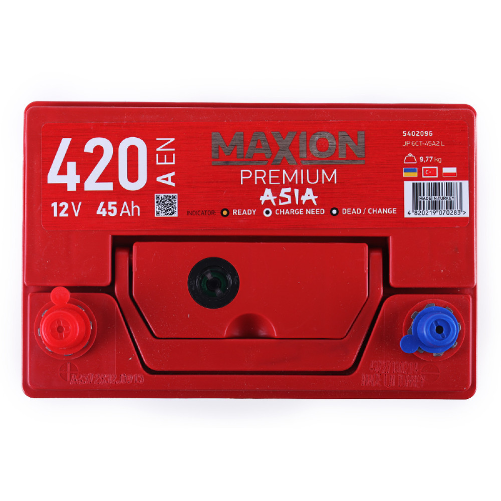 Акумулятор MAXION Premium 420А 12V - стартерна батарея класу преміум для установки на дизельні мотоблоки та мототрактори потужністю 6-24 к.с. (і бензинових двигунів з об'ємом до 1.3л.) Ємність АКБ 45 Ah при пусковому струмі 420А та напрузі 12V. Акумулятор MAXION Premium 420А 12V входить до лінійки преміум класу. Габарити АКБ - 195*127*203 мм (Д*Ш*В). Орієнтований на дизельні мотоблоки та мототрактори з підвищеним енергоспоживанням. Батарея не обслуговується, з лівою полярністю. Акумулятор зберігає високий ККД при температурному коливанні від +40 до -50°С. Сумісний із моделями бензинових та дизельних мотоблоків: Зубр, Кентавр, Вітязь (Тата), Добриня, Forte, Zirka, Аврора, Зоря, Bulat, Weima, Iron Angel, Forester. Особливості моделі: • Пусковий струм підвищено; • грати пластин стійкі до корозії; • герметичний корпус; • стійкий до вібрацій та ударів; • вбудований захист від короткого замикання. При експлуатації враховувати: лабіринтна кришка спроектована для підвищення безпеки під час монтажу.