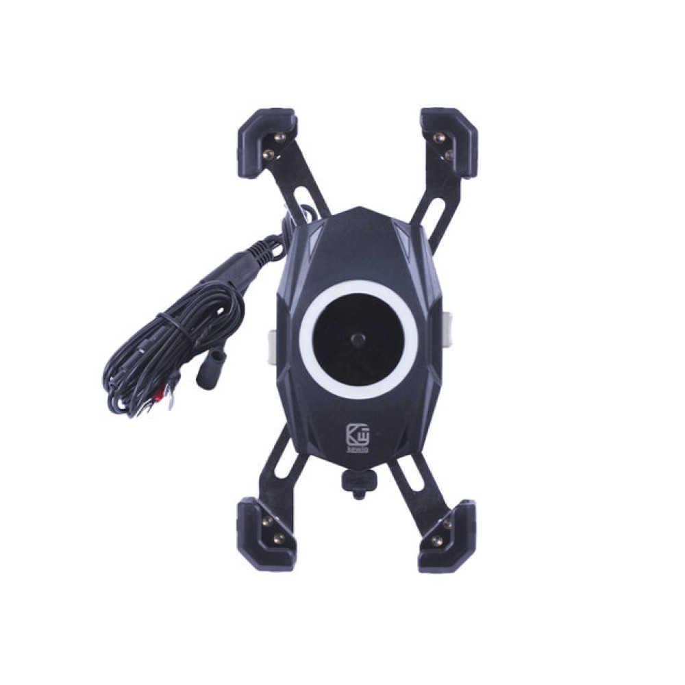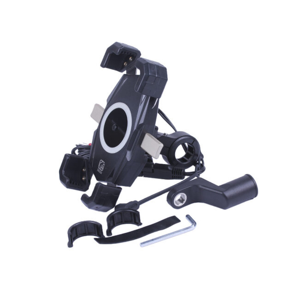 ТРИМАЧ ТЕЛЕФОНУ (КРІПЛЕННЯ НА КЕРМО) M22-A1 З БЕЗДРОТОВОЮ ЗАРЯДКОЮ ТА КРУГЛИМ ЗЕЛЕНИМ СВІТЛОДІОДОМ (KEWIQ) – ідеальне рішення для активних водіїв скутерів та мотоциклів, які цінують безпеку та комфорт під час поїздок. Завдяки міцному корпусу та надійному кріпленню на кермо ваш смартфон залишається стабільно зафіксованим навіть на високій швидкості та нерівній дорозі. Вбудована бездротова зарядка дозволяє завжди тримати телефон зарядженим, а круглий зелений LED-світлодіод забезпечує стильний сучасний дизайн та підсвічування стану зарядки.