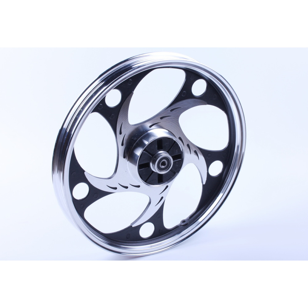 - Універсальна сумісність: литий диск TATA підходить для стандартних моделей мопеда Актив, що забезпечує ідеальне з'єднання з гальмівною системою та іншими елементами колеса.