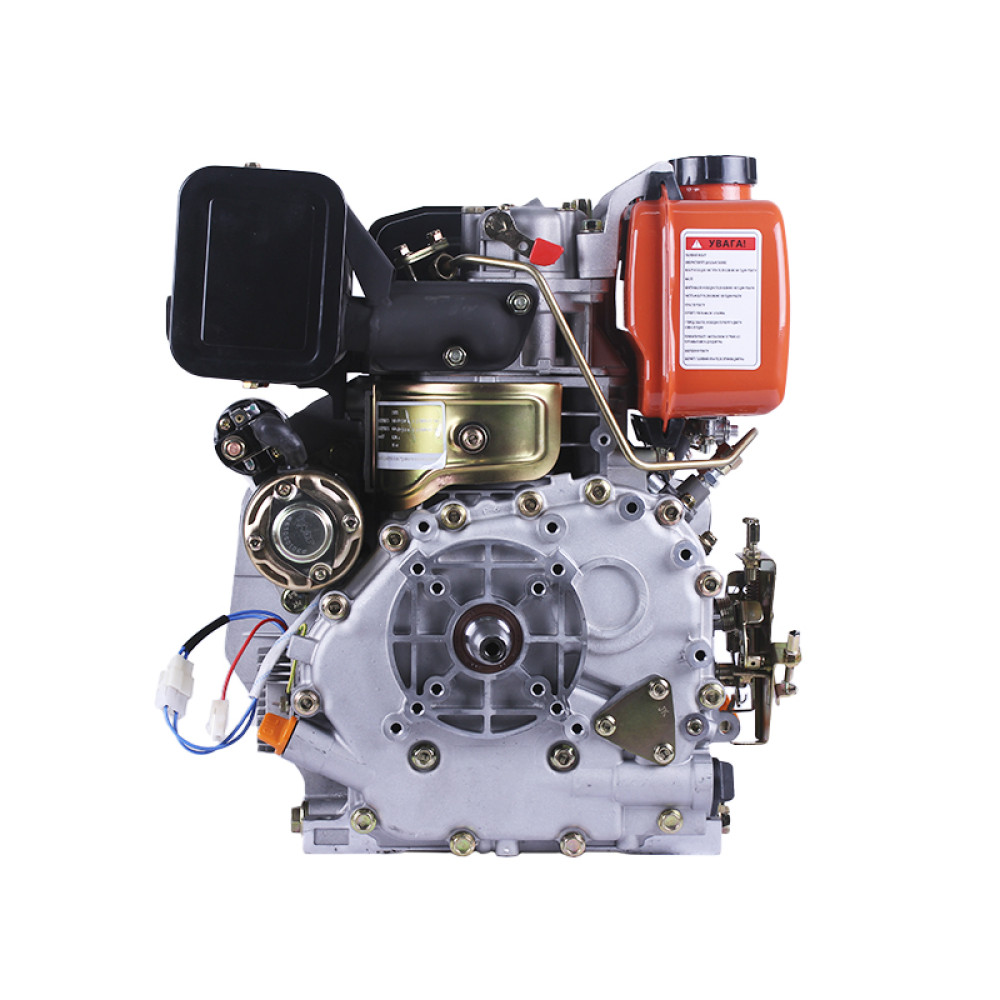 ДВИГУН ДИЗЕЛЬНИЙ З ЕЛЕКТРОСТАРТЕРОМ 178FE ТАТА (З ВИХОДОМ ВАЛУ ПІД КОНУС) 6 К.С. – надійне рішення для вашої техніки. Цей одноциліндровий, чотиритактний мотор з повітряним охолодженням та системою змазки через масляний насос забезпечує стабільну роботу навіть при тривалих і інтенсивних навантаженнях. Двигун оснащений валом під конус, діаметром циліндра 78 мм і об’ємом 305 см³, що дозволяє легко інтегрувати його в мотоблоки, генератори, насосні та будівельні агрегати.
