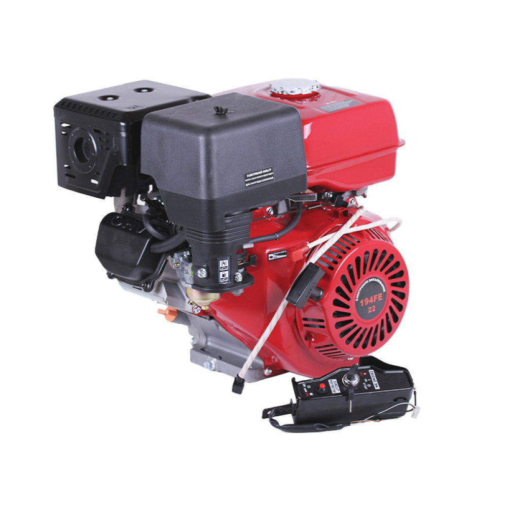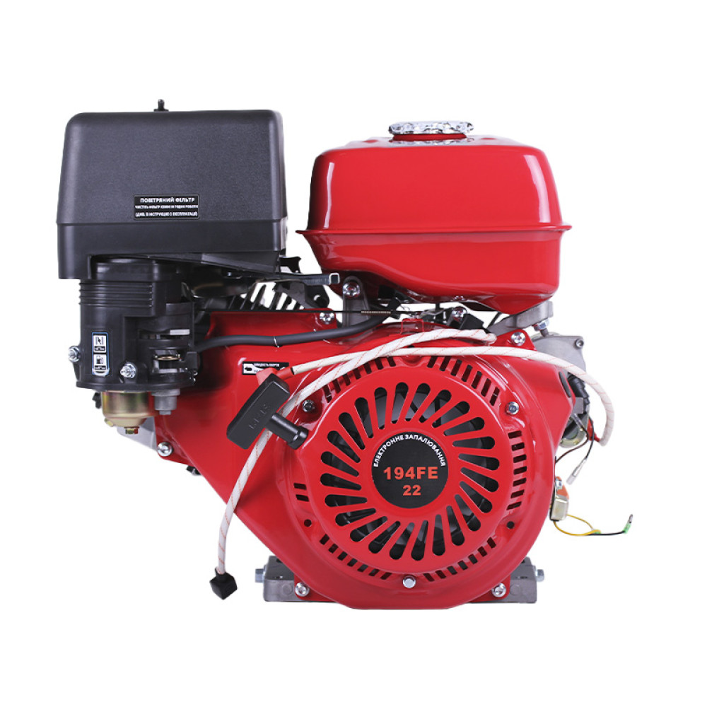 ДВИГУН БЕНЗИНОВИЙ 194FE ТАТА (ПІД ШПОНКУ, 25 ММ) 22 К.С., З ЕЛЕКТРОСТАРТЕРОМ – потужний одноциліндровий чотиритактний мотор з OHV25° конструкцією, призначений для мотоблоків, мінітракторів, генераторів, мотопомп і будівельної техніки. Вихід валу під шпонку діаметром 25 мм і довжиною 60 мм забезпечує надійну сумісність з широким спектром обладнання. Система запуску електростартер/ручний стартер гарантує легкий і швидкий запуск у будь-яких умовах.