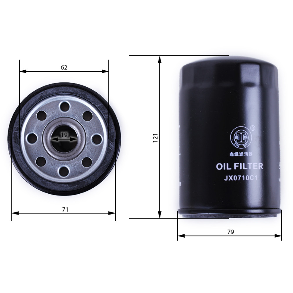 ФІЛЬТР МАСЛЯНИЙ JX0710C (JX0710C1) — це важлива запчастина системи змащення двигуна, яка забезпечує ефективне очищення моторної оливи від забруднень, металевої стружки та продуктів зносу, захищаючи двигун і продовжуючи його ресурс. Фільтр має висоту 115 мм, діаметр 76/79 мм та різьблення М20, що забезпечує точну сумісність і легку установку без додаткових доробок. Завдяки якісному фільтрувальному елементу він ефективно затримує дрібні забруднення, підтримує чистоту масла та стабільну роботу двигуна навіть при інтенсивних навантаженнях.