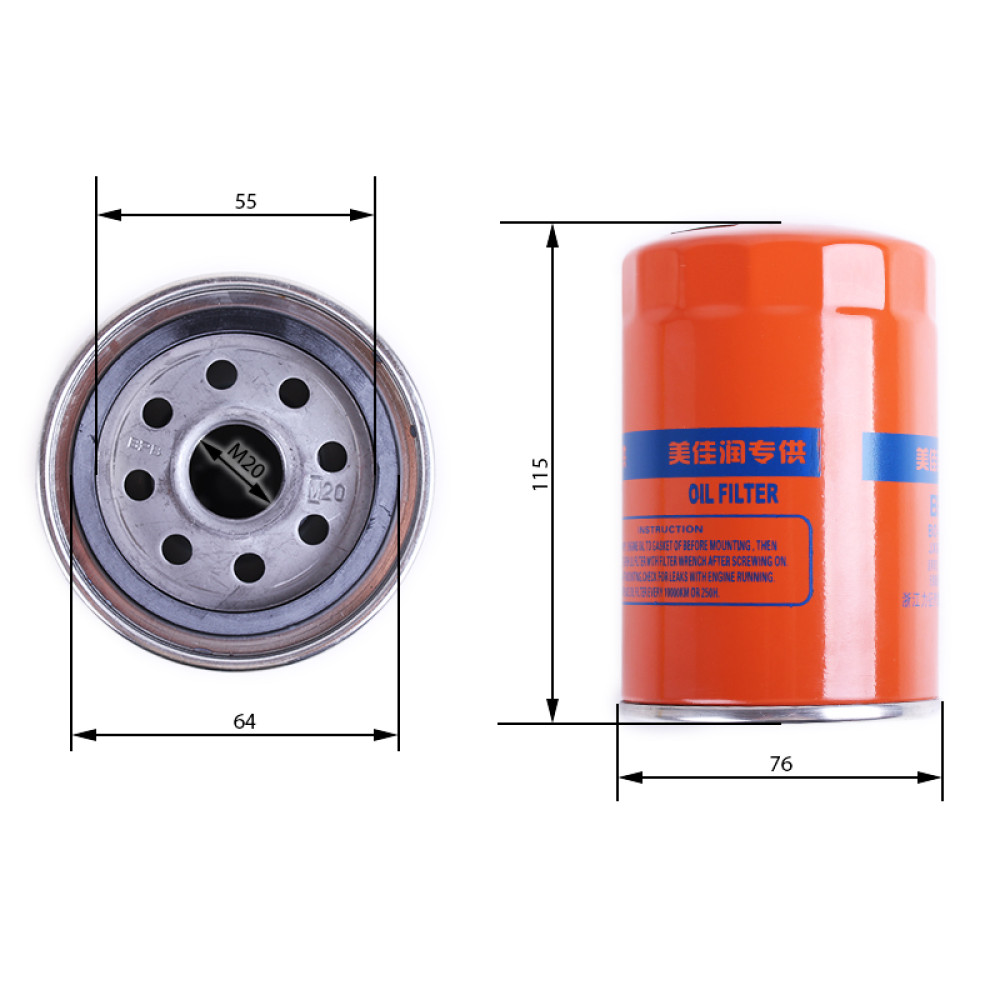 ФІЛЬТР МАСЛЯНИЙ JX0710C2 (JX0710C2) — це важлива запчастина системи змащення двигуна, яка забезпечує якісне очищення моторної оливи від забруднень, металевих частинок і продуктів зносу, захищаючи двигун від передчасного зношування та стабілізуючи його роботу. Фільтр має висоту 115 мм, діаметр 76 мм, різьблення М20 та ущільнювальну гумку з внутрішнім діаметром 55 мм і зовнішнім 64 мм, що забезпечує точну посадку та герметичність без витоків масла. Завдяки якісному фільтрувальному елементу він ефективно затримує дрібні забруднення, підтримує чистоту масла та стабільну роботу двигуна навіть при високих навантаженнях.