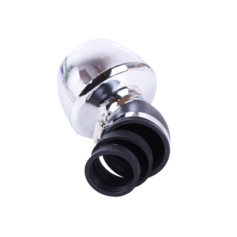 Фільтр нульовий "Turbo" хром. 45° - АМ Загальна довжина (мм) - 135 Внутрішній діаметр (мм) - 48/42/35 Вага (г) - 155