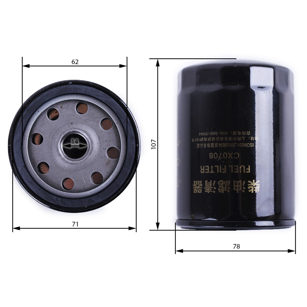 ФІЛЬТР ПАЛИВНИЙ ДТЗ 454/504 (CX0708) — це важлива запчастина паливної системи дизельного трактора, яка забезпечує ефективне очищення пального від води, бруду та дрібних механічних домішок, захищаючи паливний насос і форсунки від передчасного зношування та поломок. Фільтр має зовнішній діаметр 78 мм, діаметр штуцера 14 мм та різьблення М16, що забезпечує точну сумісність і просту установку без додаткових доробок. Фільтр паливний ДТЗ 454/504 (CX0708) допомагає зменшити ризик поломок паливної системи, покращити запуск двигуна та продовжити ресурс техніки, забезпечуючи стабільну роботу навіть у складних польових умовах.