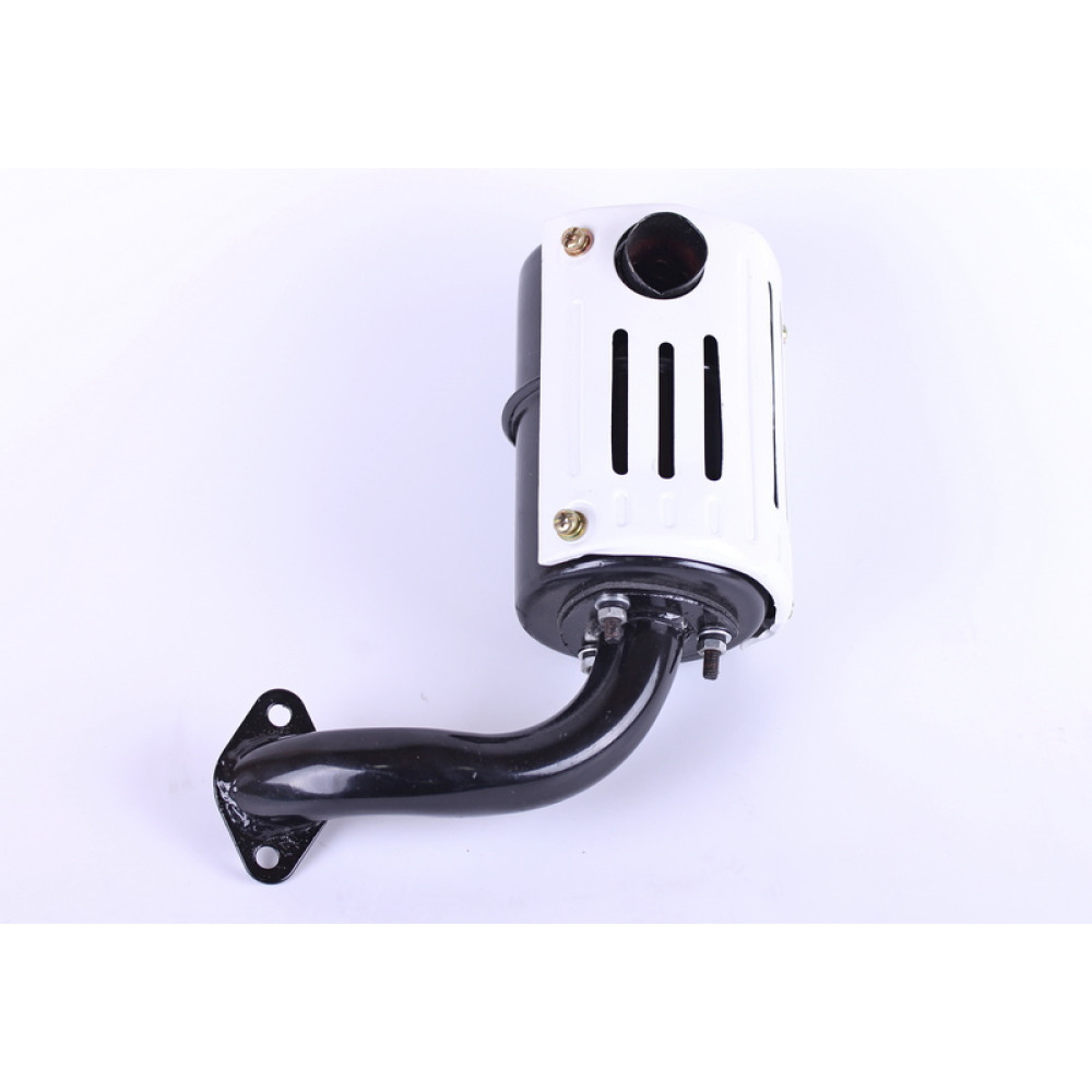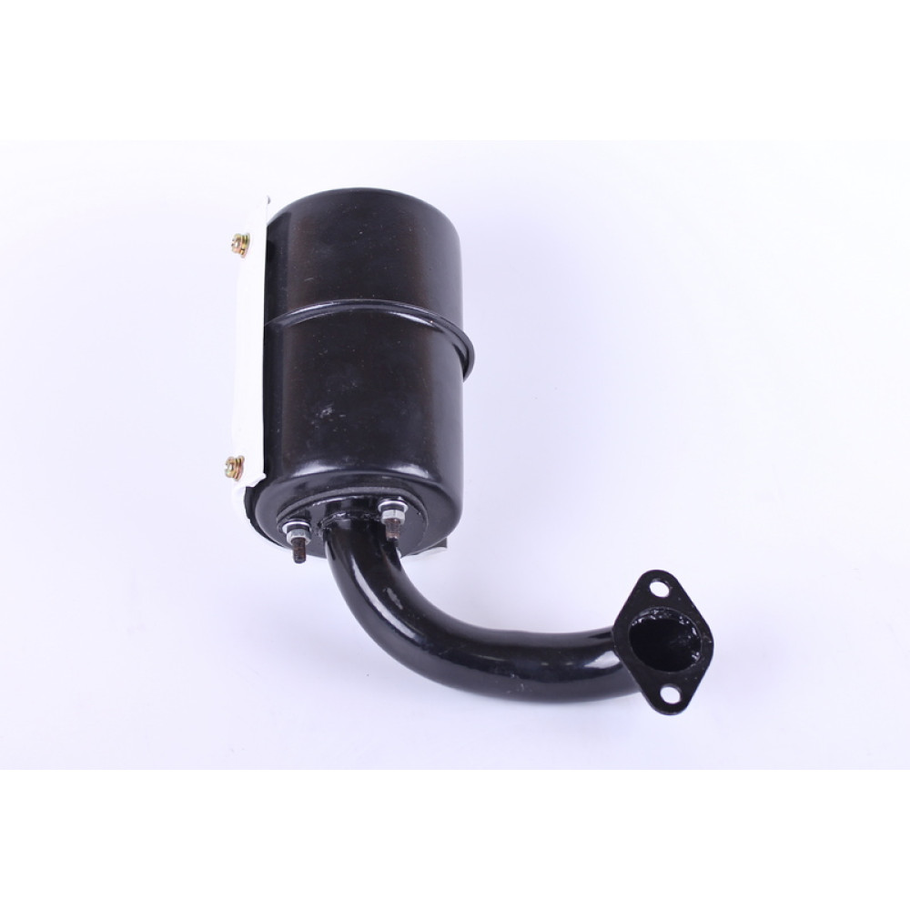 Глушник з коліном SH (Zubr) - 180N підходить на дизельні двигуни мотоблоків та мототракторів потужністю 7/8 л.с. з водяним охолодженням. Відстань по центрах кріпильних отворів (мм) – 54 Вага (гр.) – 880