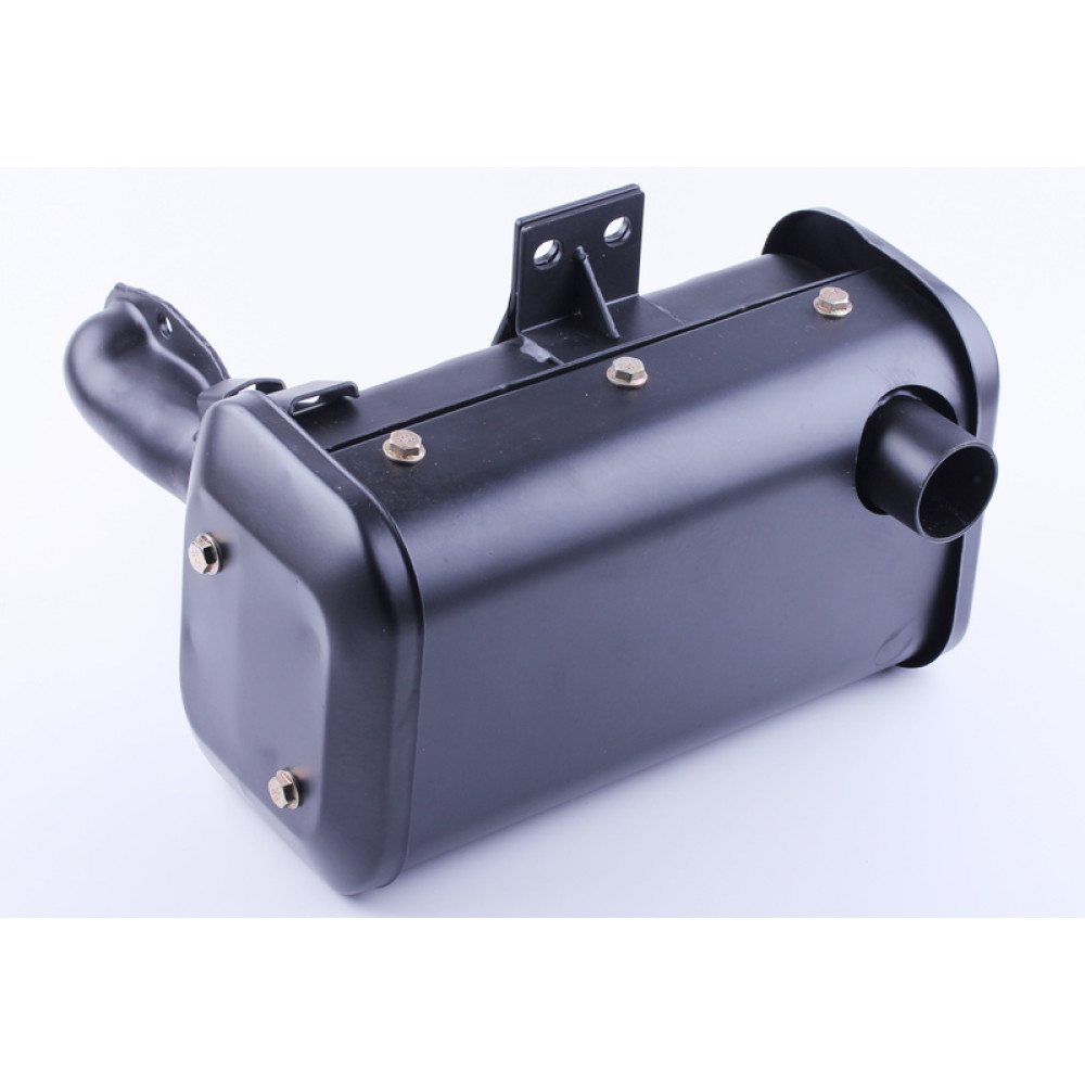 Глушник ТАТА 186F підходить на дизельні двигуни мотоблоків, мототракторів потужністю 9 л. з повітряним охолодженням. Матеріал корпусу – пофарбований метал. Завдяки глушнику ТАТА 186F через вихлопну трубу виробляється випуск відпрацьованих газів. З його допомогою зменшується звук двигуна. Параметри глушника: • габарити глушника без патрубка ДхШхВ (мм) – 285х125х150; • вага (гр.) – 520. Глушник ТАТА 186F підходить до моделей Витязь (ТАТА) 1GZ-90 (8л.с.), TT81-SH, TT121XE-SH, Зубр (Zubr) JR-Q78, JR-Q78E, Зірка (Zirka) 1080D, 1081D, 1070D, Кентавр 1070Д, 1080Д, 1081Д. Інтернет-магазин пропонує купити глушник ТАТА 186F за вигідною ціною. Гарантія на модель 186F складає 3 місяці.