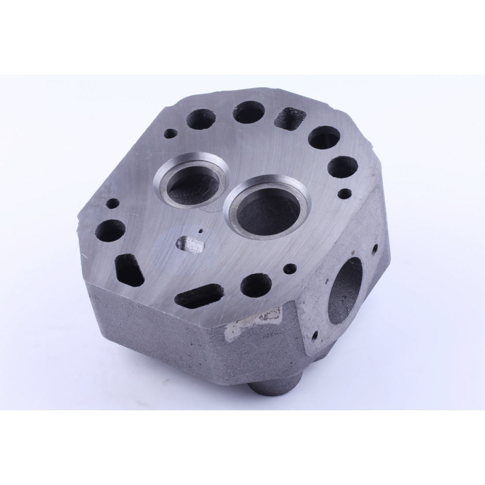 Головка циліндра гола (ZUBR original) - 195N підходить на дизельні двигуни мотоблоків та мототракторів потужністю 12 к.с. із водяним охолодженням. Матеріал – чавун. Комплектується сідлами клапанів та напрямними. Діаметр направляючих клапанів внутрішній (мм) – 8 Вага (гр.) – 6260