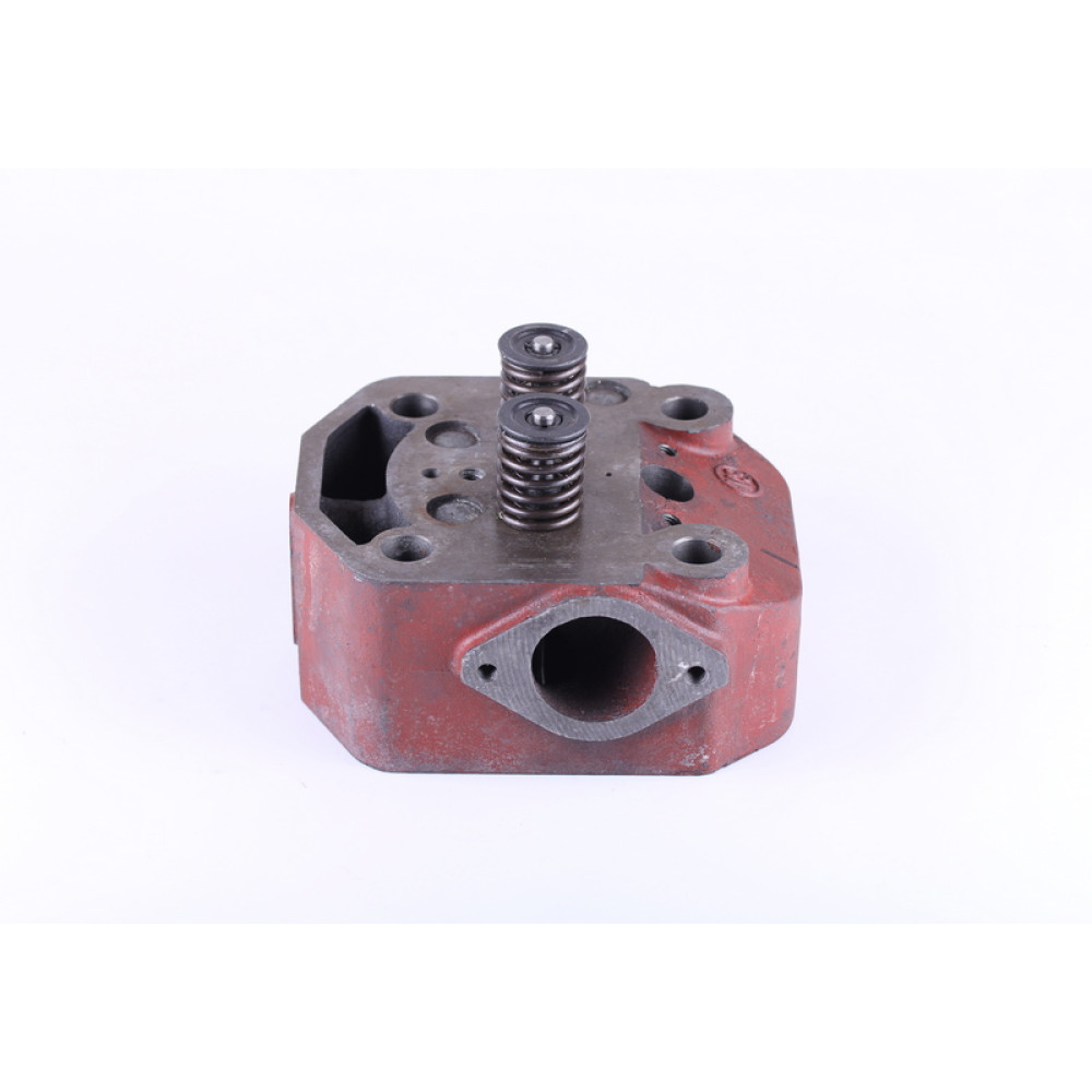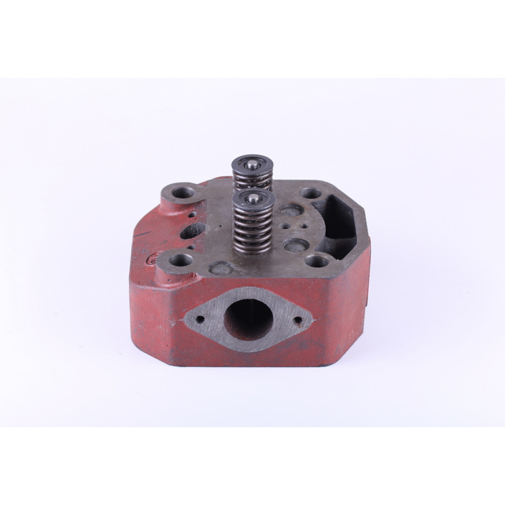 Головка циліндра в зборі ТАТА 195N ZUBR на мототракторі (під форсунку 21 мм) підходить на дизельні двигуни 195N мототракторів, мотоблоків потужністю 12 к.с. із водяним охолодженням. Деталь сумісна з технікою моделей Витязь (ТАТА) SH-121, 1GZ-90 (12 к.с.), Кентавр 1012Д, 1012 ДЕ, Зубр (Zubr) JR-Q12, JR-Q12E, Зірка (Zirka) 1012D Forte) HSD1G-121, SH-121, Добриня Т121, Аврора 121Д, Булат (Bulat) 121Д, Claus МТ-121, GardenScout GS 112 D та інших. Основні характеристики головки циліндра у зборі ТАТА 195N ZUBR під форсунку 21 мм: розміри площини до блоку 145х180 мм; • висота із клапанами/без клапанів відповідно 120/80 мм; • відстань між центрами отворів кріплення 100х100 мм; • відстань між центрами отворів під глушник та повітряний фільтр 71 мм; • діаметр тарілок клапанів 36 мм, 42 мм; • діаметр отвору під кран для зливу рідини, що охолоджує, 15 мм. Модель укомплектована клапанним механізмом у зборі. Для якісної роботи двигуна клапани рекомендується притерти. Виконана із чавун