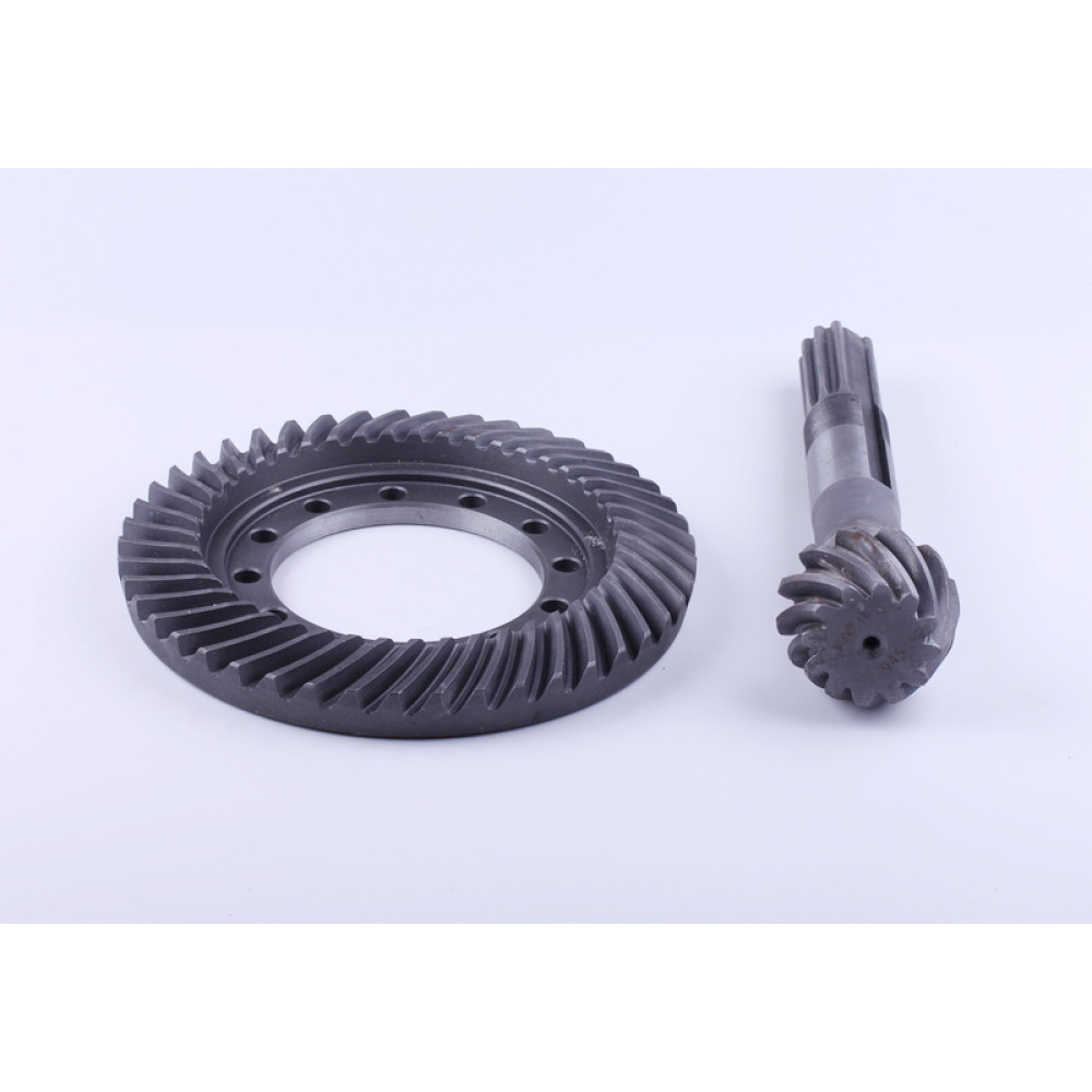ГОЛОВНА ПАРА ЗАДНЬОГО МОСТА (ВАЛ ГОЛОВНОЇ ПЕРЕДАЧІ ТА ШЕСТЕРНЯ КОНІЧНА) Z-10/12 Z-45 DONGFENG 354/404 (300.38.129 300.38.140) — ключова деталь трансмісії трактора, яка забезпечує ефективну передачу крутного моменту на задній міст, стабільну роботу задньої передачі та надійне обертання коліс. Деталь має діаметр 35/224/105 мм, довжину 276 мм, кількість зубців 45/12, кількість шліців 10 та вагу 6275 г, що забезпечує точну посадку, стабільну роботу вузла і сумісність з тракторами DongFeng 354 / 404.