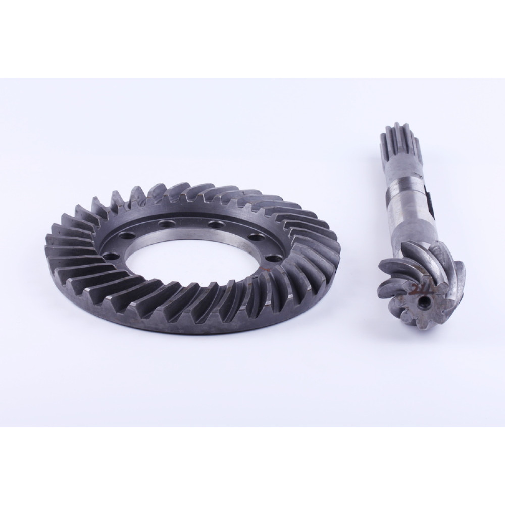 ГОЛОВНА ПАРА ЗАДНЬОГО МОСТУ (ШЕСТЕРНЯ ВЕДЕНА Z-8/10 + ШЕСТЕРНЯ ВЕДУЧА Z-35) DONGFENG (250.38.118A/250.38.127A) — критично важлива деталь трансмісії трактора, яка забезпечує надійну передачу крутного моменту на задній міст, стабільну роботу задньої передачі та довговічну експлуатацію техніки. Деталь має внутрішній діаметр 35 мм, зовнішній діаметр 100 мм, довжину 325 мм, а кількість зубців становить 8/10 для веденої шестерні та 35 для ведучої. Вага деталі 6050 г забезпечує стабільну роботу вузла та сумісність з тракторами DongFeng.