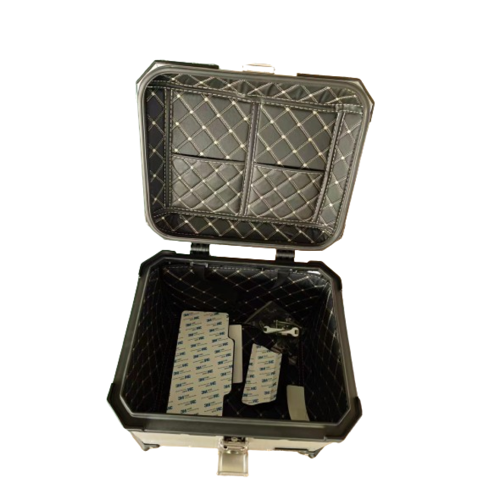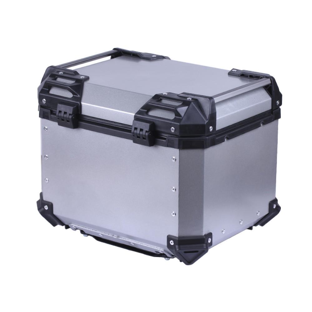 - Надійний алюмінієвий кофр для мотоцикла – міцний металевий корпус забезпечує максимальний захист багажу від ударів, вологи та зовнішніх пошкоджень.