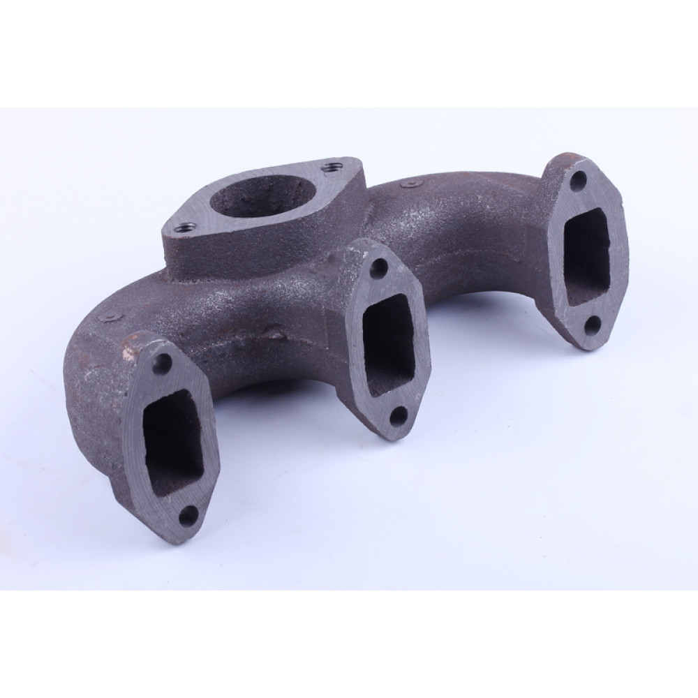 КОЛЕКТОР ВИПУСКНИЙ (ТИП 1) КМ385ВТ DONGFENG 240/244, FOTON 240/244, JINMA 240/244 (KM385BT-07001-2) — важлива деталь системи вихлопу дизельного двигуна, яка забезпечує ефективний відвід відпрацьованих газів та стабільну роботу мотора. Деталь сумісна з дизельними двигунами КМ385ВТ і тракторами DongFeng 240/244, Foton 240/244, Jinma 240/244. Виготовлений з міцного чавуну, що забезпечує високу стійкість до високих температур та тривалий термін служби. Технічні параметри: ширина 82 мм, висота 100 мм, довжина 242 мм, вага 2135 г. Міжцентрові отвори кріплення глушника — 74 мм, головки — 64 мм.