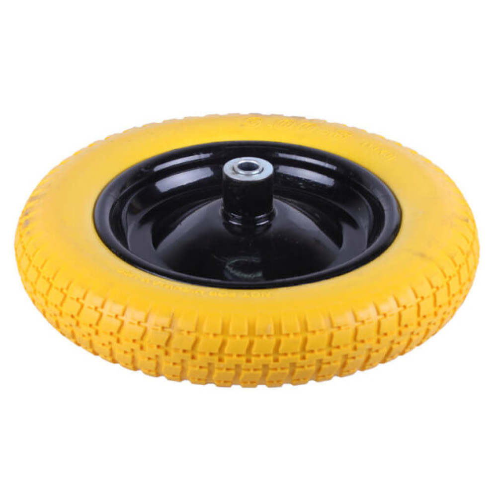 - Без проколів і втрати тиску: пінополіуретанове колесо для тачки не потребує камери, тому ніколи не спускає і не лопається.