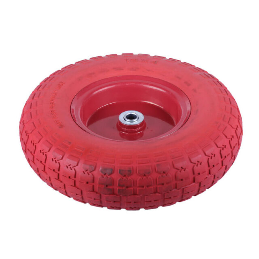 - Безкамерне колесо для садово-будівельної тачки — жодних проколів і підкачування: пінополіуретанове колесо ST 4.00-6 працює без обслуговування та не боїться проколів, забезпечуючи безперебійну роботу в саду, на будівництві чи на дачі.