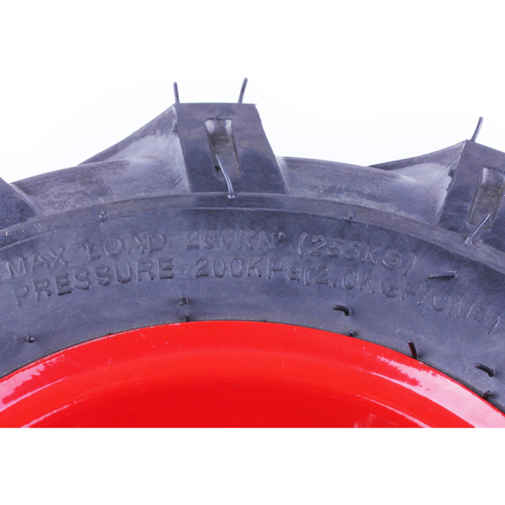 - Максимальне зчеплення з ґрунтом: завдяки малюнку протектора “ялинка” колесо забезпечує потужну тягу та стабільність руху мотоблока або культиватора.