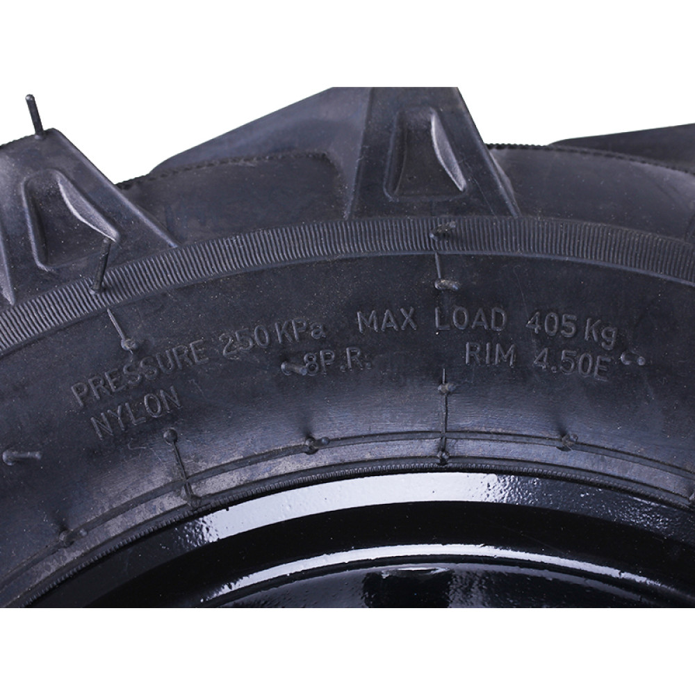 - Надійне зчеплення на будь-якому ґрунті: протектор “ялинка” забезпечує максимальну тягу та стабільність руху мотоблока або мототрактора, навіть на вологих, пухких чи глинистих ділянках.