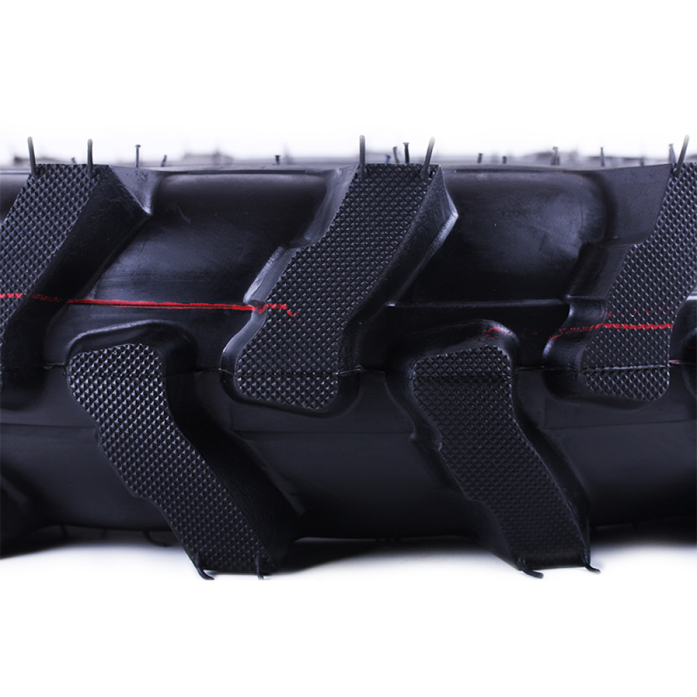 - Протектор типу «ялинка» гарантує відмінне зчеплення з ґрунтом та впевнений рух мототрактора по м'якій, вологій та нерівній поверхні.