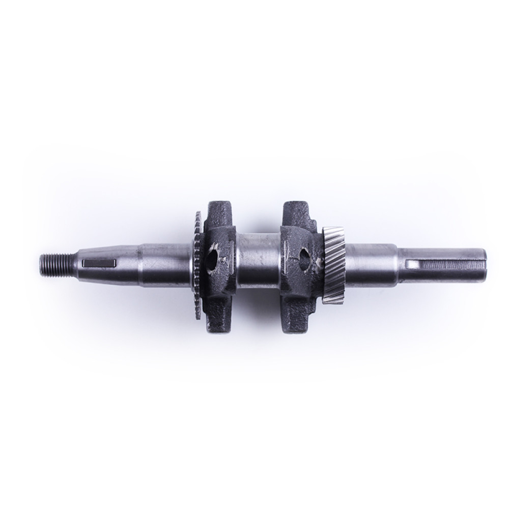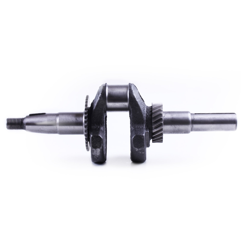 Колінвал у зборі ТАТА 168F під шпонку 19 мм призначений для встановлення на бензинові двигуни потужністю 6,5-7 к.с. з повітряним охолодженням. Основні технічні характеристики колінвала у зборі ТАТА 168F під шпонку діаметром 19 мм: довжина загальна 250 мм; • вузька шестерня 39 зубців; • широка шестерня 24 зубці; • Діаметр шатунної шийки 30 мм. Розміри шпонкової частини: довжина 50 мм; • Діаметр 19 мм. Підходить на віброплити, мотоблоки, культиватори, дробарки та іншу робочу техніку моделей Витязь SR1Z-750, SR1Z-90, SR1Z-80, SR1Z-100, Вейма M800L, M1165, M-400, M-450, M-900, Форте (Forte) 105G, HSD1G-80B, Зірка (Zirka) LX2060G, LX2061G, LX2062G, LX3060G, GT70G GN-2, GN-4, KX-3, PS-Q70, Кентавр 2060Б, 2061Б, 2070Б, 2075Б, 2080Б, 2081Б, МБ-40-1, МБ-2070Б-3, МБ-3060Б, Нева Зоря SH-2, SH-41S, Добриня T-41, MT-65, Булат (Bulat) BT900, BT1100C, Бригадир МК-75Б, МК-80Б, МК-105РБ та інших. У нашому інтернет-магазині можна купити