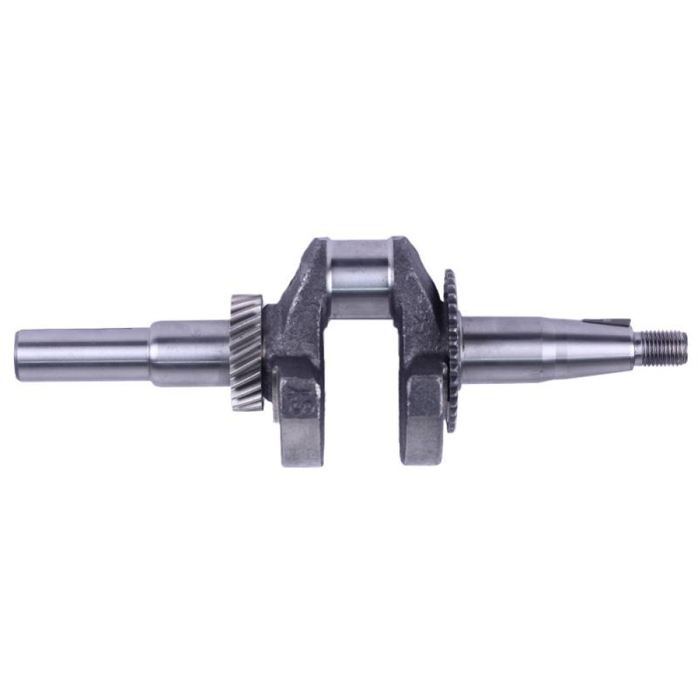 Колінвал у зборі ТАТА 168F під шпонку 20 мм призначений для встановлення на бензинові двигуни потужністю 6,5-7 к.с. з повітряним охолодженням. Основні технічні характеристики колінвала у зборі ТАТА 168F під шпонку діаметром 20 мм: довжина загальна 250 мм; • вузька шестерня 39 зубців; • широка шестерня 24 зубці; • діаметр шатунної шийки 30 мм; маса вузла 1,58 кг. Розміри шпонкової частини: довжина 50 мм; • Діаметр 20 мм. Підходить на віброплити, мотоблоки, культиватори, дробарки та іншу робочу техніку моделей Витязь SR1Z-750, SR1Z-90, SR1Z-80, SR1Z-100, Вейма M800L, M1165, M-400, M-450, M-900, Форте (Forte) 105G, HSD1G-80B, Зірка (Zirka) LX2060G, LX2061G, LX2062G, LX3060G, GT70G GN-2, GN-4, KX-3, PS-Q70, Кентавр 2060Б, 2061Б, 2070Б, 2075Б, 2080Б, 2081Б, МБ-40-1, МБ-2070Б-3, МБ-3060Б, Нева Зоря SH-2, SH-41S, Добриня T-41, MT-65, Булат (Bulat) BT900, BT1100C, Бригадир МК-75Б, МК-80Б, МК-105РБ та інших. У нашому інтернет-