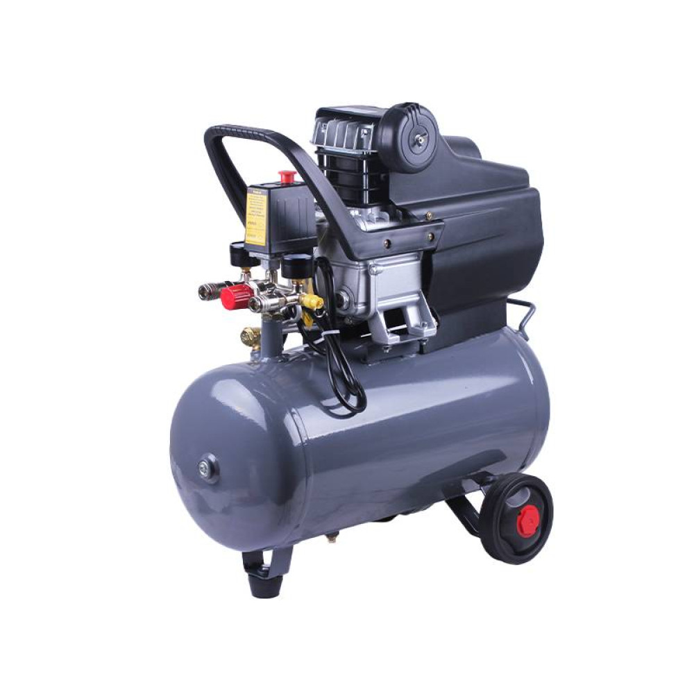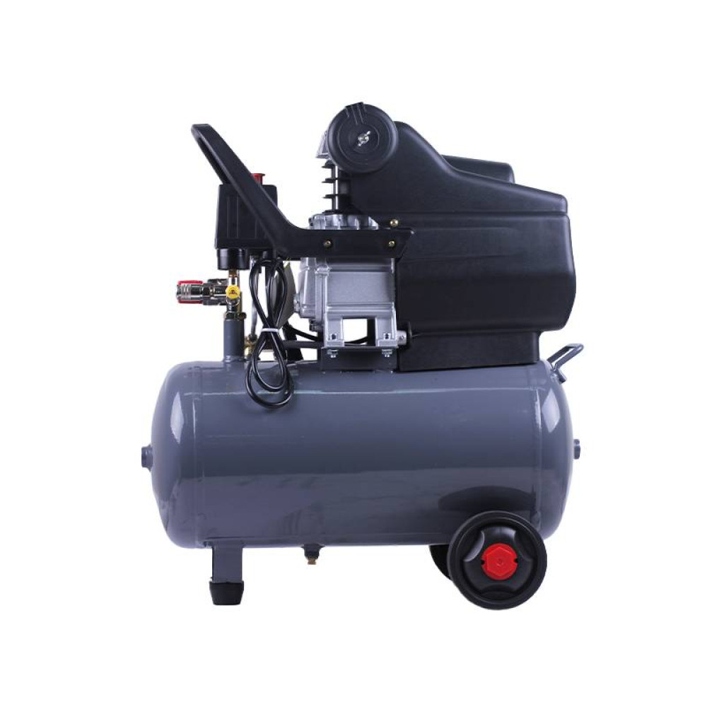 - Горизонтальний ресивер 24 л та робочий тиск до 8 бар дозволяють виконувати завдання різної складності, від накачування шин до професійних будівельних робіт.