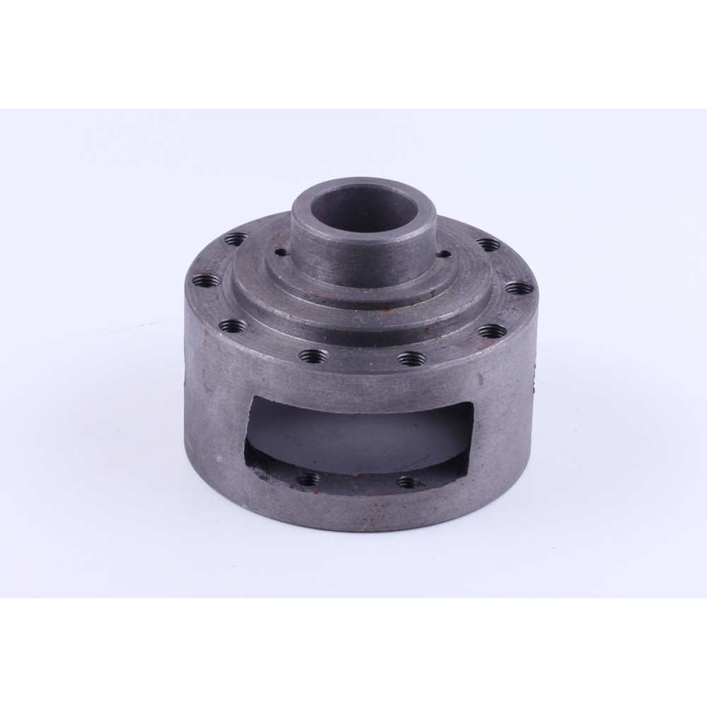 КОРПУС ДИФЕРЕНЦІАЛУ ЗАДНЬОГО МОСТУ DONGFENG 240/244 (200.38.116A) — міцна та надійна деталь трансмісії трактора, призначена для стабільної роботи диференціального механізму. Корпус забезпечує правильне розміщення та фіксацію елементів диференціалу, рівномірний розподіл навантаження і захист внутрішніх деталей від пошкоджень та передчасного зносу. Деталь має висоту 104 мм, внутрішній діаметр 55 мм, зовнішній діаметр 136 мм та 10 монтажних отворів, що забезпечує точну посадку і надійне кріплення у вузлі заднього мосту. Вага корпусу становить 2638 г, що свідчить про його міцність і довговічність.