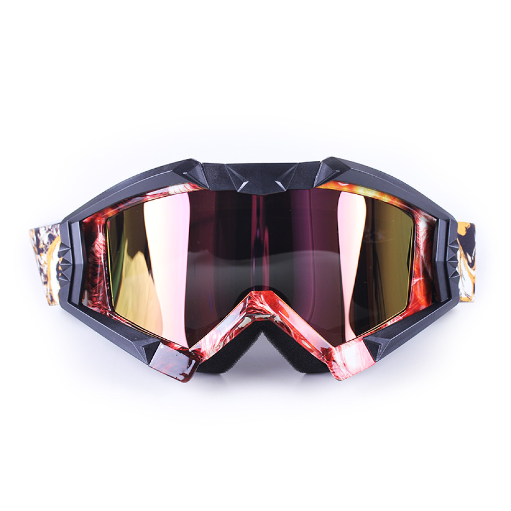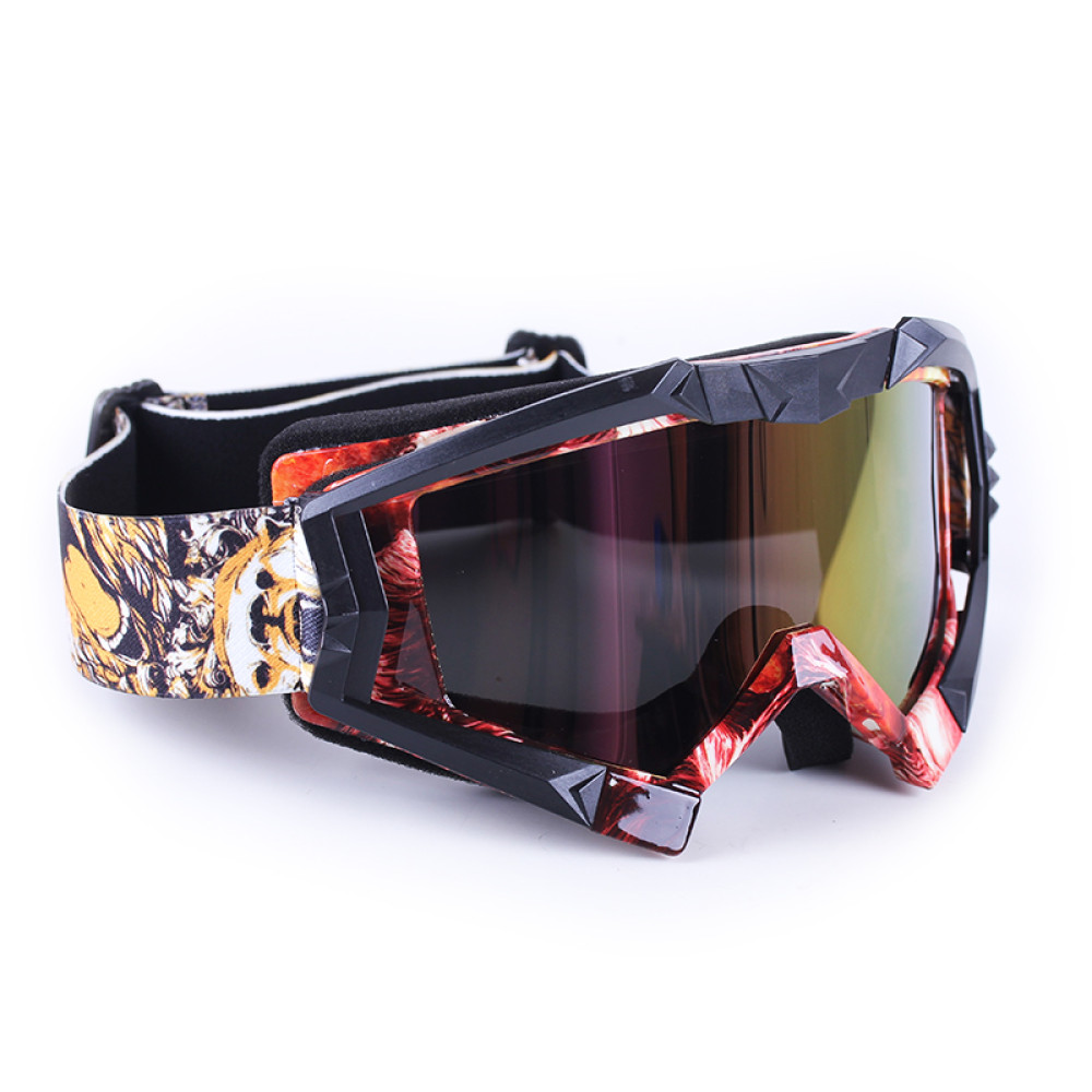 МОТООКУЛЯРИ V009 VIRTUE, ЧОРНІ — стильні та надійні тактичні мотоокуляри для дорослих, які забезпечують максимальний захист очей під час катання на мотоциклі, скутері або квадроциклі. Оснащені лінзою з ефектом хамелеон та затемненням, вони адаптуються до різного освітлення, забезпечуючи чітке бачення та комфорт навіть при яскравому сонці або в тіні. Міцний пластиковий корпус з легкістю витримує активне використання, а стильний чорно-червоний-жовтий дизайн з принтом робить окуляри функціональним та модним аксесуаром.