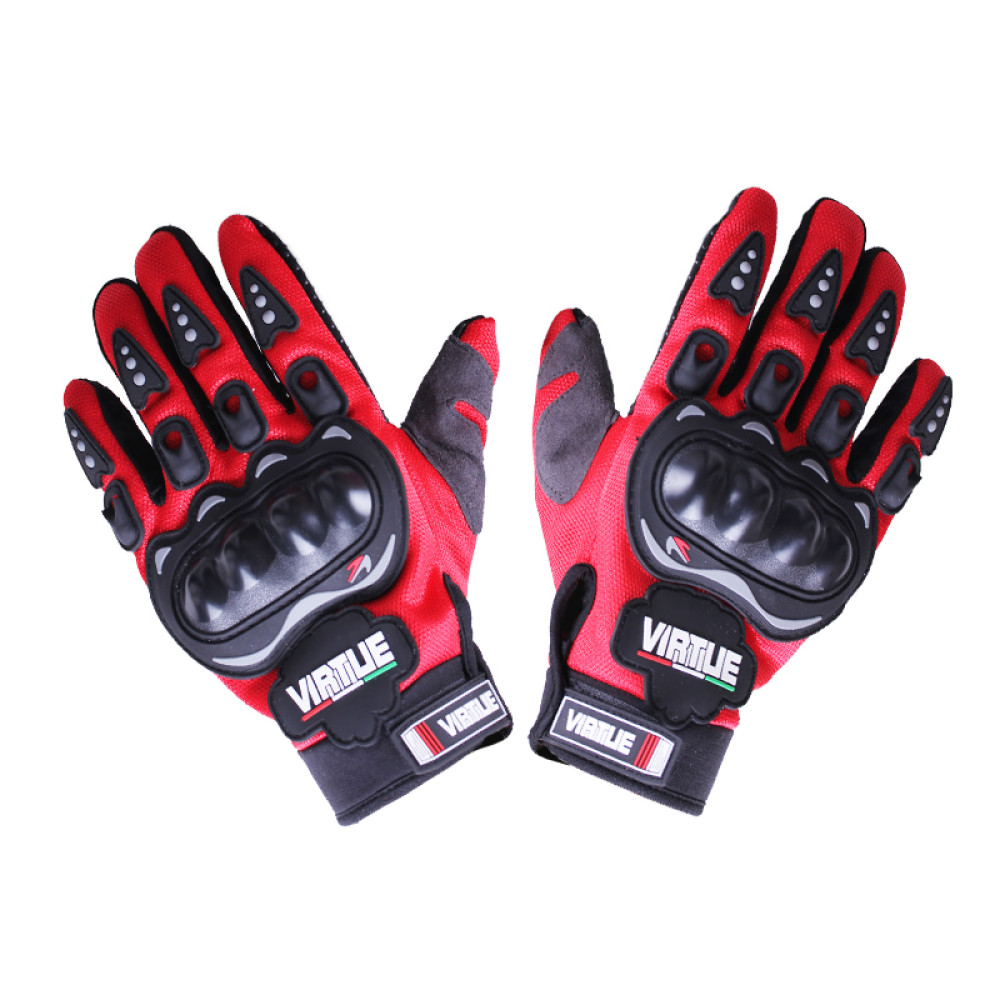 Мотоперчатки VIRTUE червоні size L відносяться до класу міських моделей. Не обмежують рух, але дають достатній рівень захисту від падіння. Рукавичка пошита з мембранної тканини, яка має вітрозахисні та водоізоляційні властивості. Розмір часу мембрани пропускає вологу шкіри, зберігаючи комфорт кистей під час їзди. Тканина зберігає властивості до 200 прань. Поверхня долоні покрита ПВХ-напиленням типу точка. Воно підвищує зчеплення руки в рукавичці із ручкою. Мотоперчатки VIRTUE червоні size L мають пластикову накладку на основі долоні, що забезпечує додатковий захист при контакті кисті з поверхнею під час падіння. Кісточки та фаланги пальців захищені карбоновими накладками. Основа великого пальця покрита накладкою зі шкіри (нубук), що перешкоджають стирання. Горловина мото рукавички VIRTUE фіксується затягуванням на липучці. У манжету вшита гумка, що щільно прилягає до зап'ястя. Інтернет-магазин пропонує широкий вибір моделей на мото рукавички VIRTUE в Україні. Купити мото рукавички VIRTUE червоні