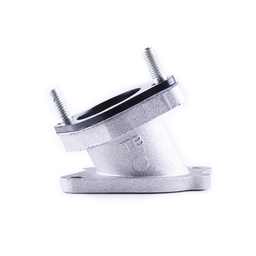 Патрубок карбюратора метал (тип 1) CB-125/150 матеріал - силумін. Відстань між центрами шпильок (мм) – 47 Відстань між центрами отворів (мм) – 62 Діаметр дифузора (мм) – 28 Вага (гр.) – 70