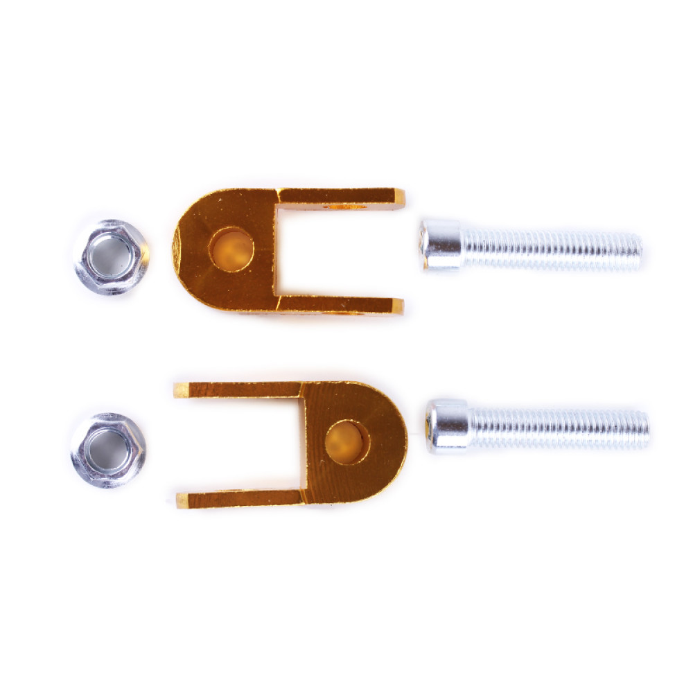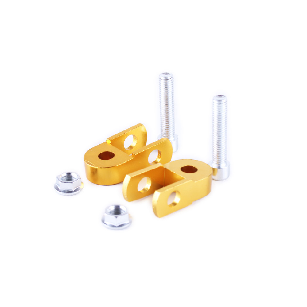 Подовжувач заднього амортизатора 25mm комплект (пара) золотий - AM матеріал - алюмінієвий сплав Довжина загальна (мм) - 55 Подовження (мм) - 25 Ширина під амортизатор (мм) - 22 Діаметр отворів (мм) - 10 Вага (гр.)