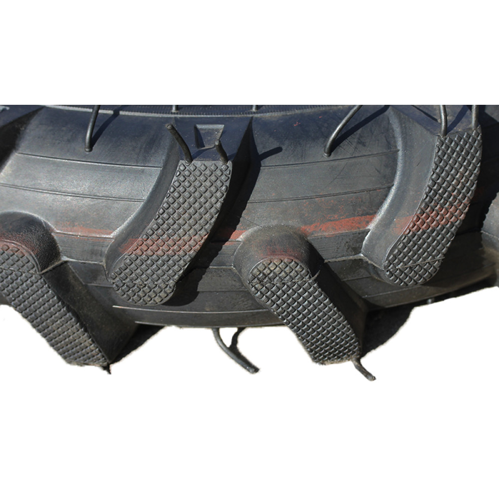- Надійне зчеплення на будь-якому ґрунті завдяки протектору «ялинка», що забезпечує максимальну прохідність для мотоблоків і міні техніки.