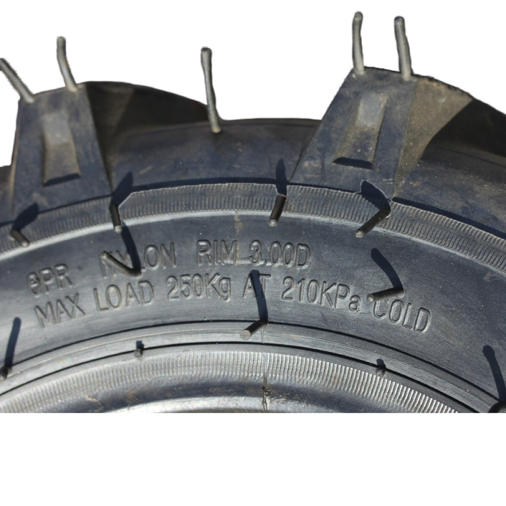 - Міцна конструкція 6PR гарантує довговічність, стійкість до механічних пошкоджень і тривалу експлуатацію покришки для мотоблока.