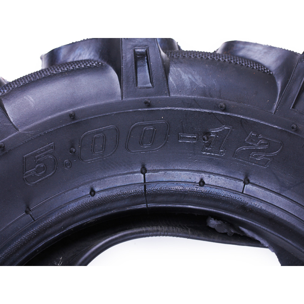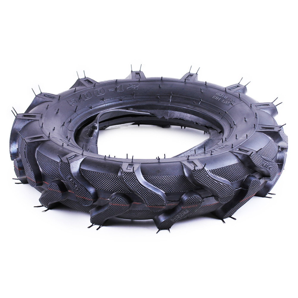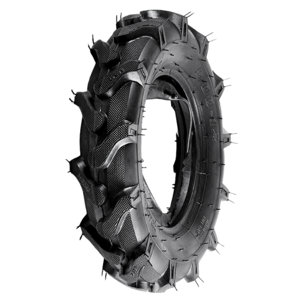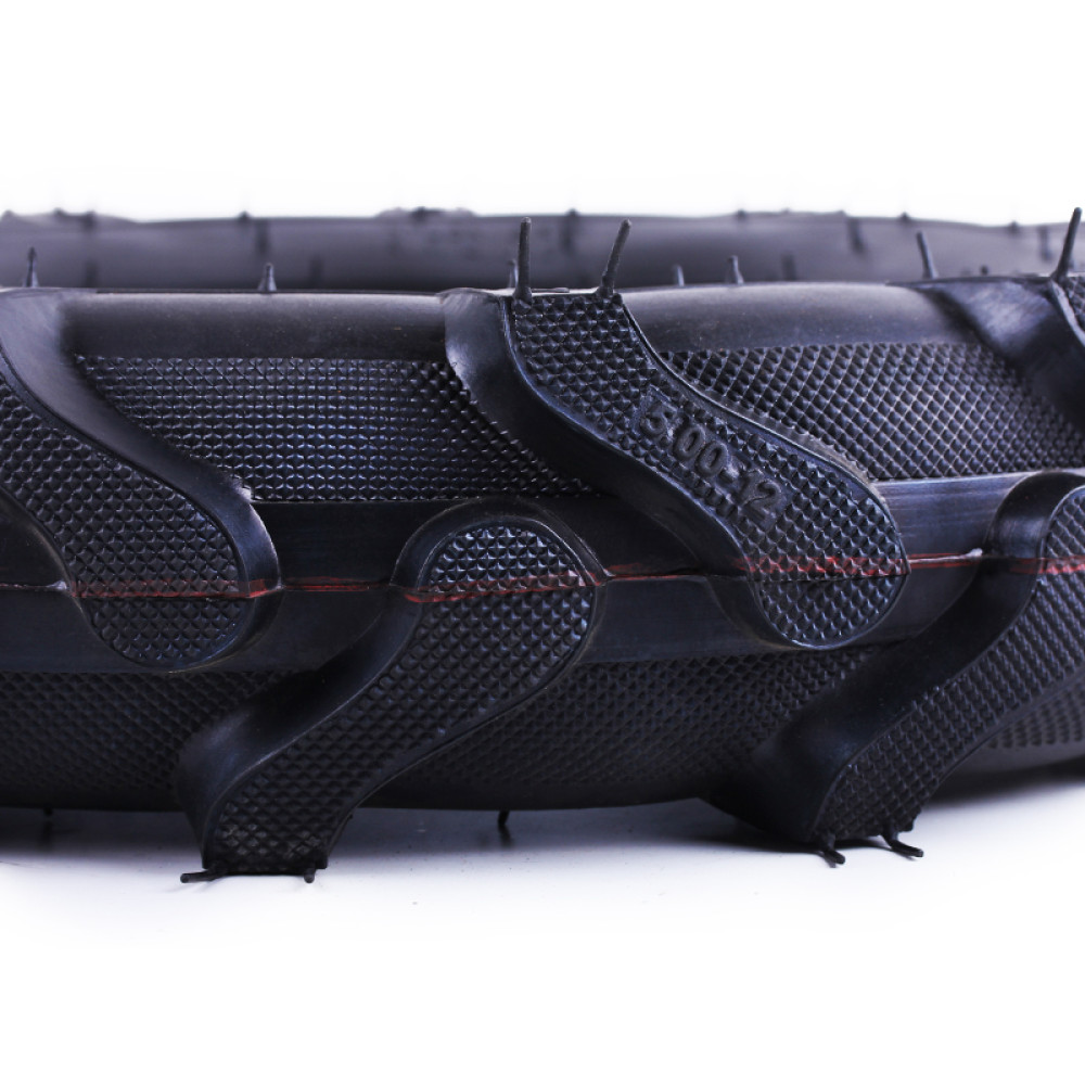 - 6-шарова конструкція (6PR) робить цю мотоблочну покришку YBX 5.00×12 міцною, стійкою до проколів і механічних пошкоджень, що гарантує довговічність та ефективну роботу мотоблока.