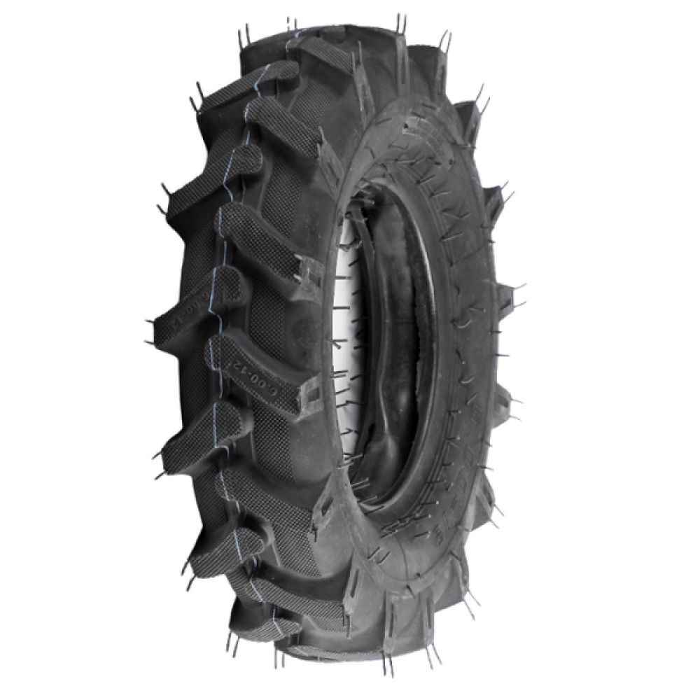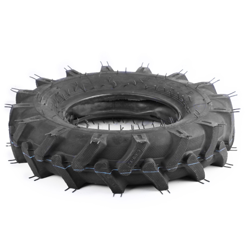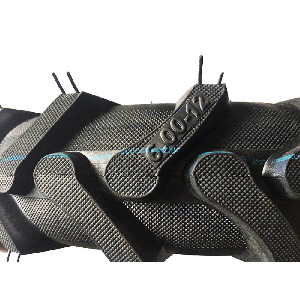 - Міцність і довговічність покришки YBX 6.00×12 — 8 шарів забезпечують стабільність форми, стійкість до проколів і механічних пошкоджень для мотоблоків і мототракторів 8–15 кінських сил.