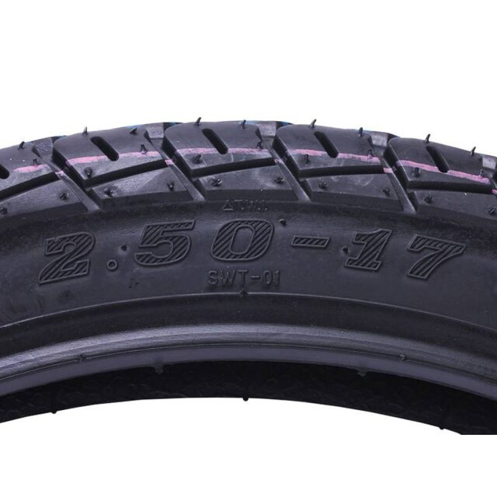 - Універсальний розмір 2.50×17 – підходить для більшості моделей мотоциклів, скутерів і мопедів, що робить цю покришку оптимальним вибором для щоденного використання.