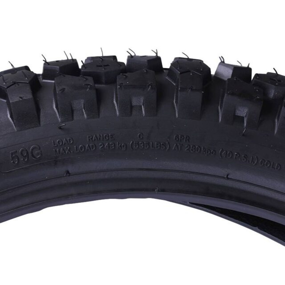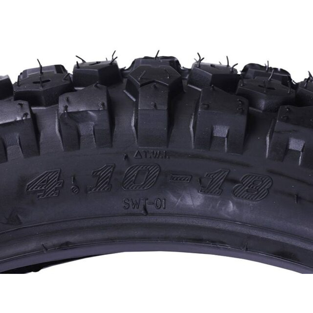- Покращене зчеплення з дорогою: завдяки оптимізованому протектору, покришка TATA 4.10×18 забезпечує стабільність і безпеку на будь-якій поверхні.
