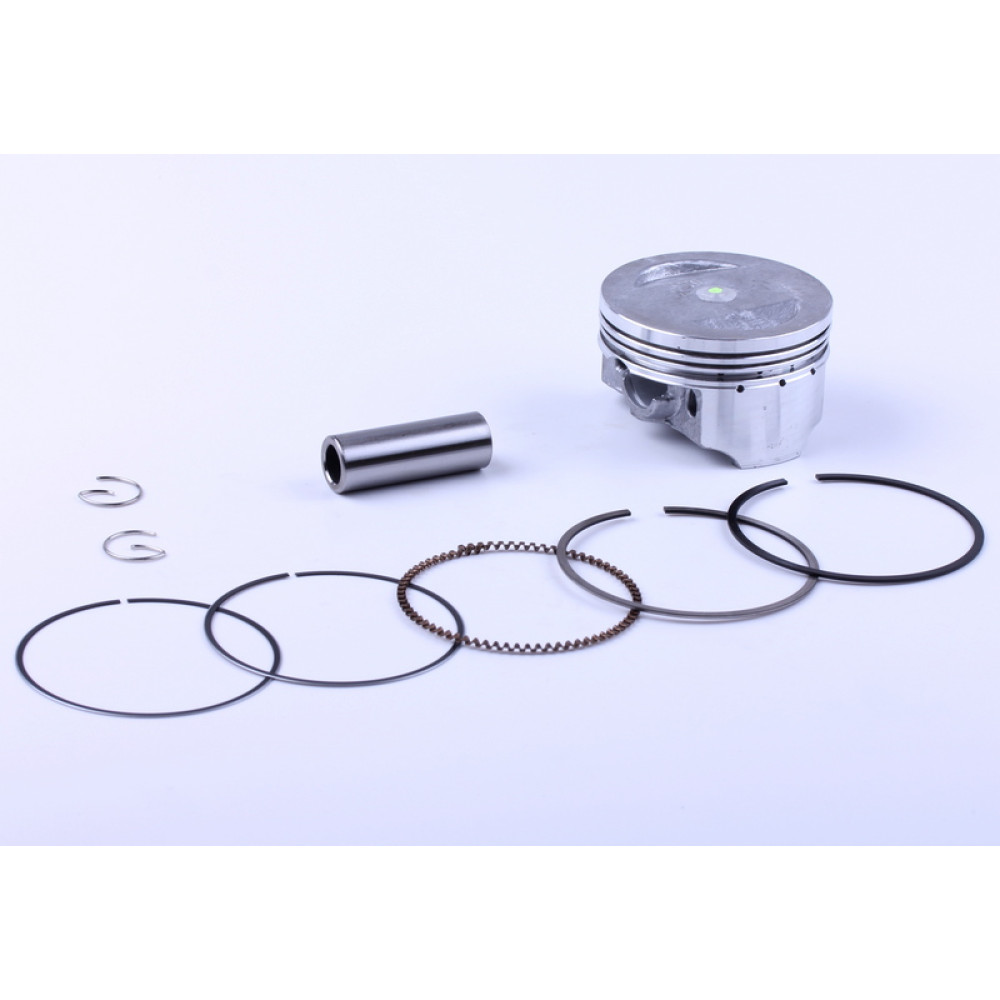 Поршневий комплект Ø62,0mm STD-150CC підходить на мопеди(скутери) з об'ємом циліндра від 150 см3. Розміри: поршень Ø...mm, палець L-42,5mm, Ø15mm, висота від пальця до верху поршня H-...mm. Вага (к-т): ... гр.