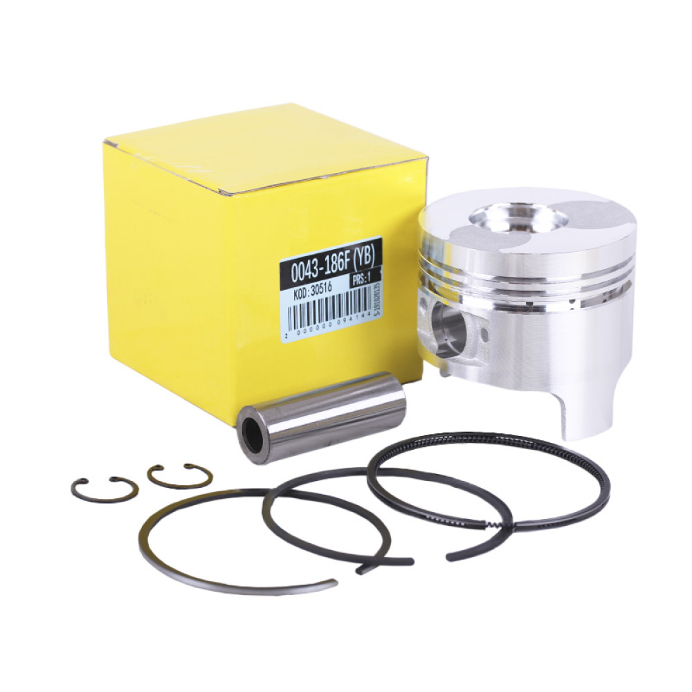 Поршневий комплект 86,0 mm STD (тупий конус форкамери) - 186FА Y-BOX Висота поршня (мм) - 77.7 Відстань від пальця до верху поршня (мм) - 25.5 Діаметр спідниці (мм) - 85.9 Діаметр пальця (мм) пальця (мм) - 65 Товщина кілець (мм) - 2*2, 1*4 Вага (гр.) - 620