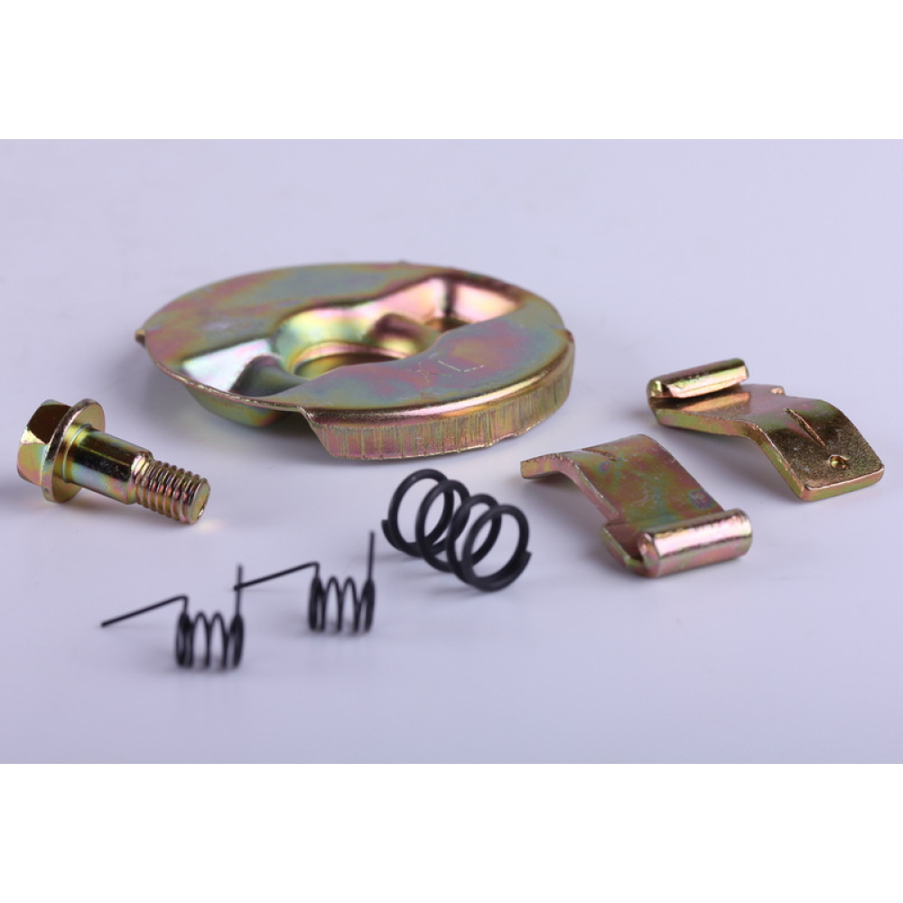 Ремкомплект ручного стартера – 177F підходить на бензинові двигуни мотоблоків, генераторів та ін, потужністю 9 л.с. з повітряним охолодженням. Комплект: три пружини, дві собачки, пластина, болт кріплення. Вага комплекту (гр.) – 48