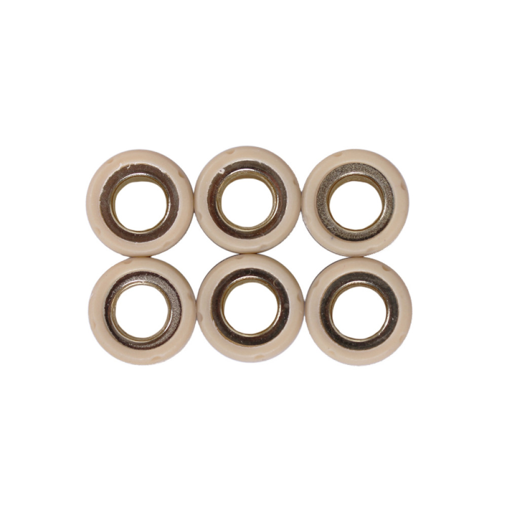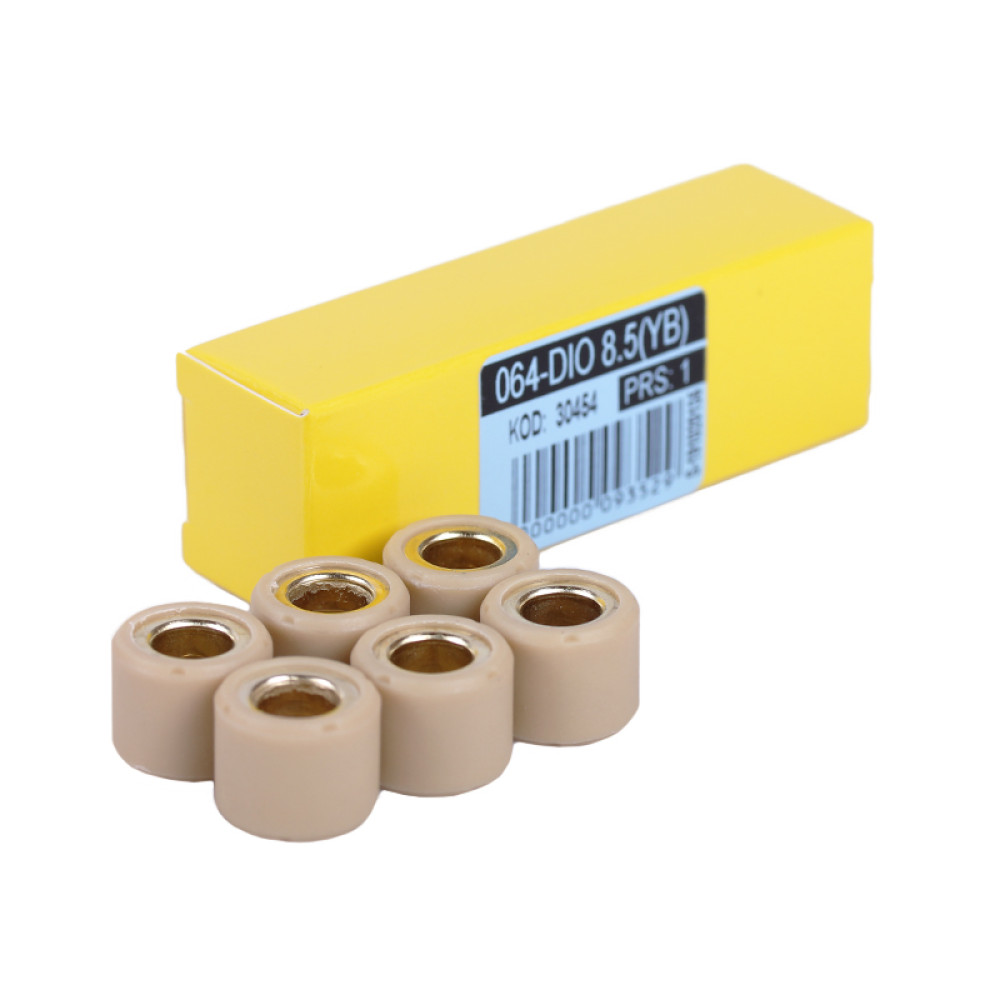 Ролики варіатора 8,5 g, к-т: 6 шт. - Dio 50/Takt 24 Y-BOX Висота (мм) - 13 Зовнішній діаметр (мм) - 16 Внутрішній діаметр (мм) - 8 Вага (г) - 51