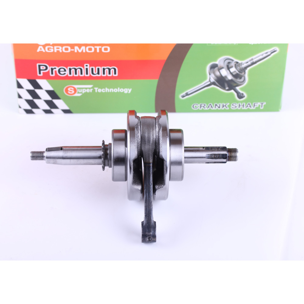 Коленвал в сборе - Актив/Дельта/Альфа - Premium Длина коленвала (мм) - 205 Диаметр подшипников 6304/Р53 (мм) - 52 Диаметр щек коленвала (мм) - 90 Ширина двух щек (мм) - 40 Диаметр шлицевой Z6 (мм) - 17 Диаметр конуса (мм) - 16 / 19 Диаметр под палец (мм) - 13 Вес брутто (гр.) - 2100