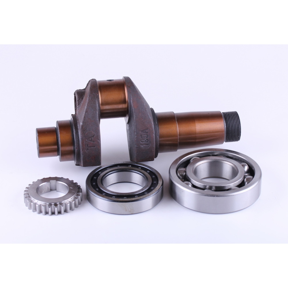 Коленвал в сборе с подшипниками и шестерней GZ - 195N подходит на дизельные двигатели мотоблоков и мототракторов мощностью 12 л.с. с водяным охлаждением. Длина общая (мм) - 272 Диаметр шейки под шатун (мм) - 52 Посадосные места подшипников 6311, NF211E (мм) - 55 Отверстия под балансирующые грузы - М12 Вес (гр.) - 7700
