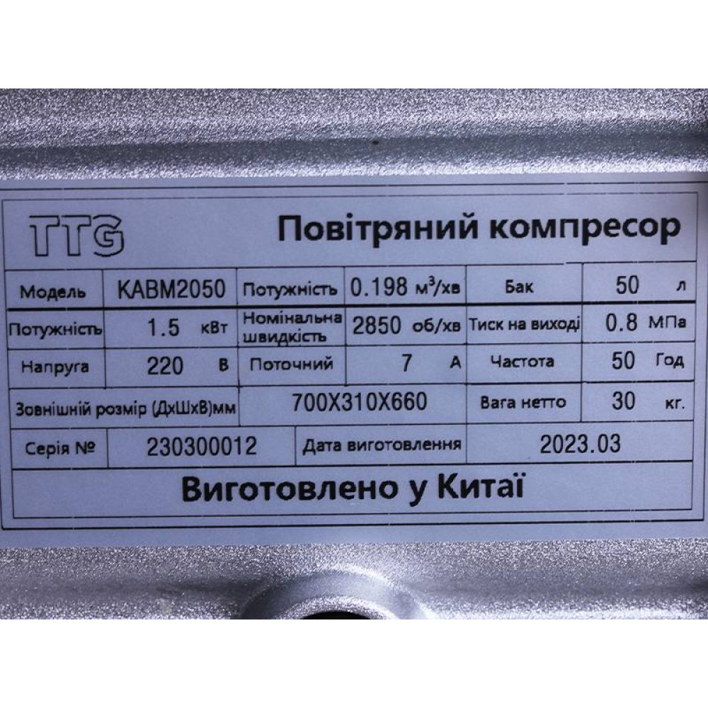 Выбирайте компрессор KABM2050 TTG – мощный сжатый воздух для профессиональных и бытовых задач с быстрой доставкой по Украине от Miklisa Agrogroup.