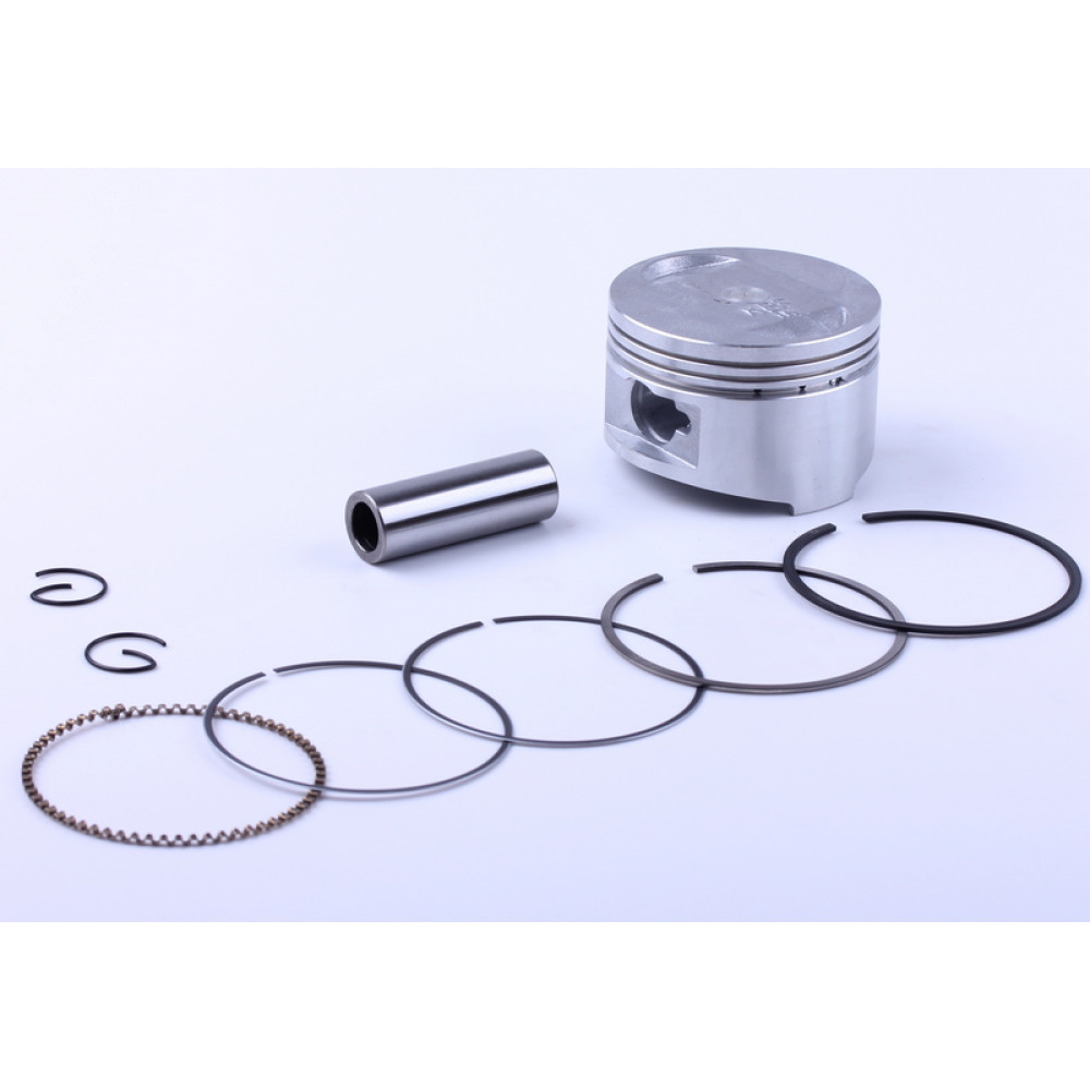 Поршневой комплект Ø57,5mm - 150CC (второй ремонт), подходит на мопеды(скутеры) с объемом цилиндра 150 см3. Размеры: поршень Ø...mm, палец L-42,5mm, Ø15mm, высота от пальца до верха поршня H-12.35mm. Вес (к-т): 150 гр.