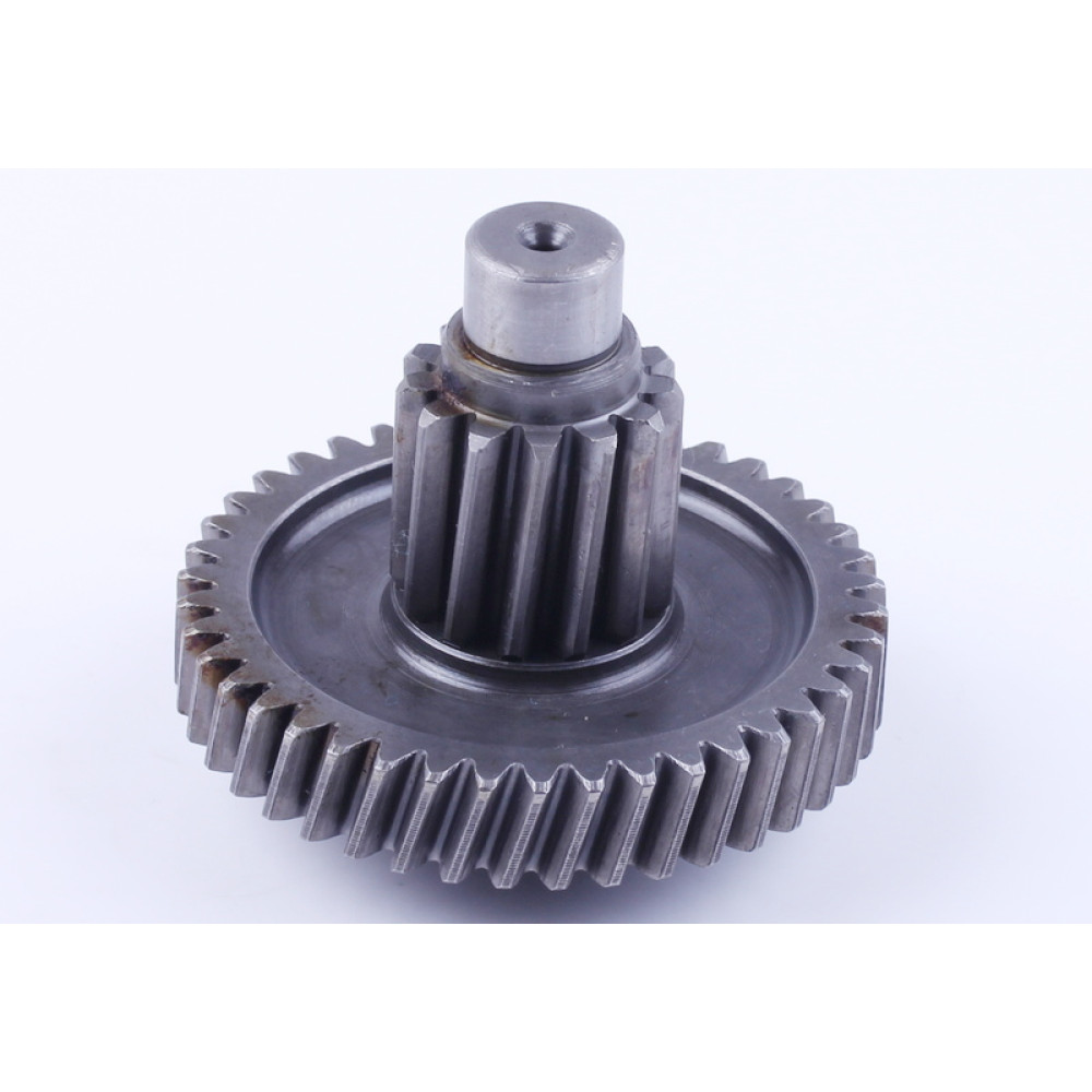 Вал редуктора вторичный (колеса) - 125/150CC Высота общая (мм) - 60 Количество зубов (шт.) - 13 / 42 Вес (гр.) - 340