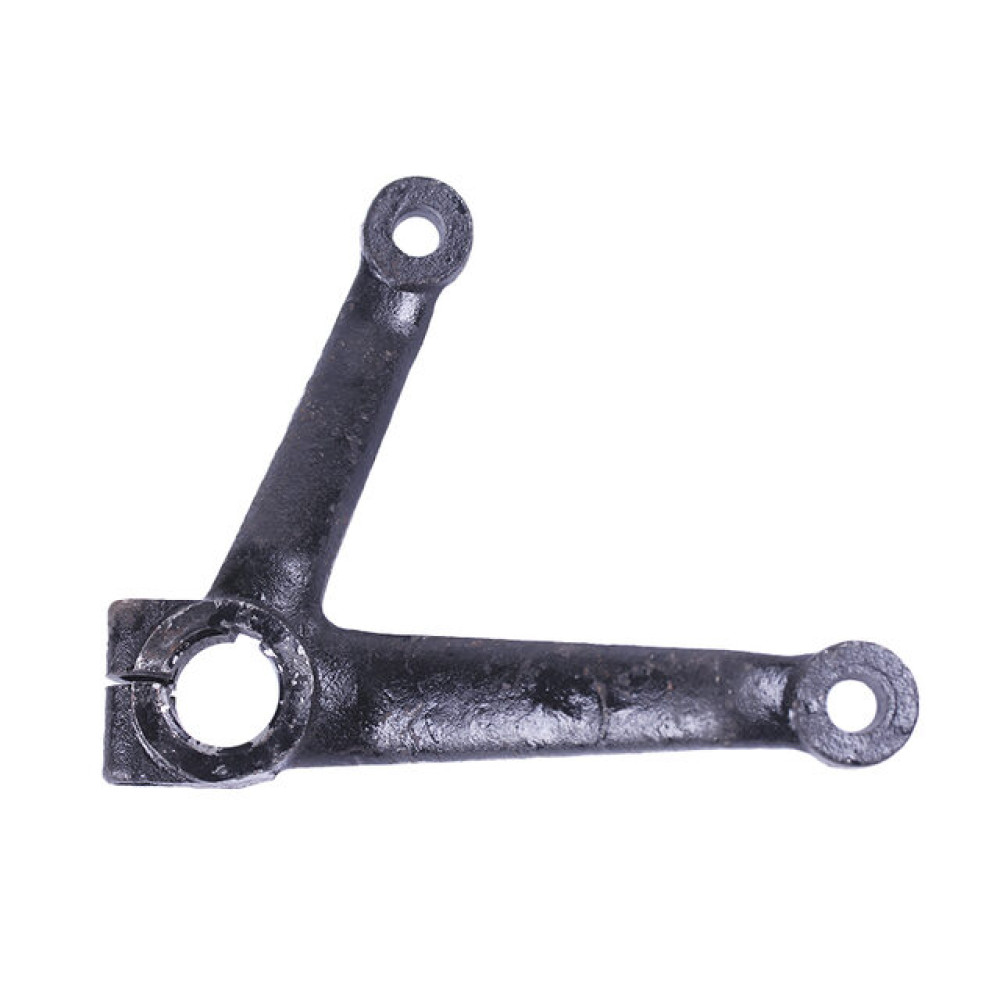 ВАЖІЛЬ ПОВОРОТНИЙ ЛІВИЙ SHIFENG 240 – критично важливий елемент керованої системи міні-трактора, що забезпечує точне обертання передньої осі та стабільність руху на будь-якій поверхні. Надійний лівий важіль дозволяє ефективно передавати зусилля на цапфи коліс, запобігає перекосам та забезпечує безпечне маневрування під час роботи в полі та на дорозі. Виготовлений з міцного чавуну, важіль має відстань по центрам конусів 190 мм, висоту посадки під цапфу 30 мм, діаметр під цапфу 27 мм, внутрішні діаметри 27/12/12 мм та конус 12-14 мм. Вага 890 г гарантує надійність конструкції та стійкість до механічних навантажень.