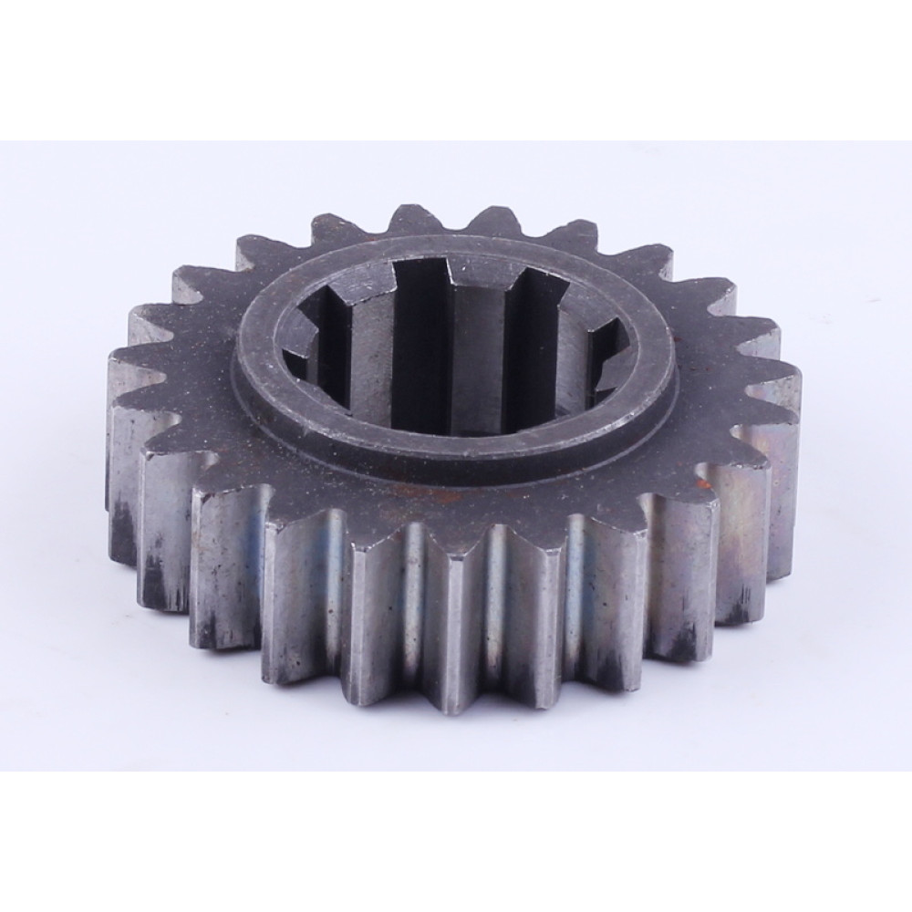 ШЕСТЕРНЯ 1-Ї ПЕРЕДАЧІ ПРОМІЖНОГО ВАЛУ КПП Z-8/23 DONGFENG 240/244 (200.37.117-1) – важливий елемент трансмісії, який забезпечує стабільну роботу коробки передач та ефективну передачу крутного моменту під час роботи трактора. Дана шестерня 1 передачі DongFeng 240/244 має 23 зубці та 8 шліців, що забезпечує надійну взаємодію з елементами коробки передач. Деталь має діаметр 76 мм, висоту 25 мм та діаметр під шліци 32 мм, що забезпечує точну посадку у вузлі проміжного валу КПП. Вага шестерні становить 493 г, що свідчить про її міцність та здатність витримувати значні робочі навантаження.