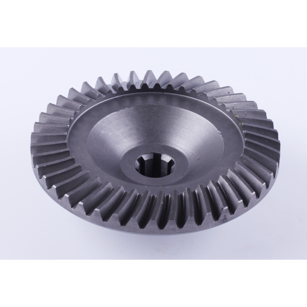 Шестерня конічна Z-43 - КПП (косозуба) підходить на шестерний редуктор дизельних та бензинових мотоблоків потужністю 6-9 к.с. з повітряним охолодженням. Діаметр зовнішній (мм) – 122 Діаметр внутрішній під шліці (мм) – 16/20 Висота загальна (мм) – 44 Вага (гр.) – 1040