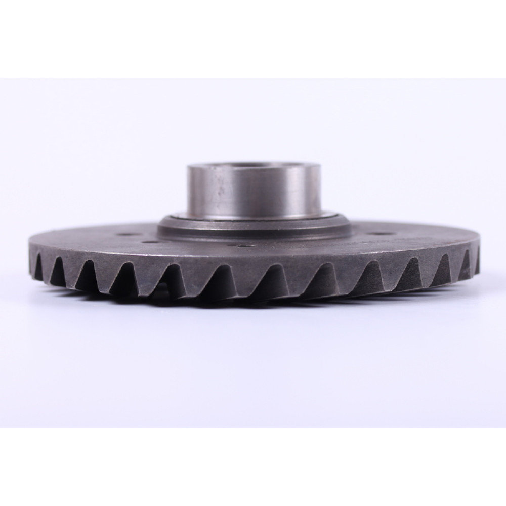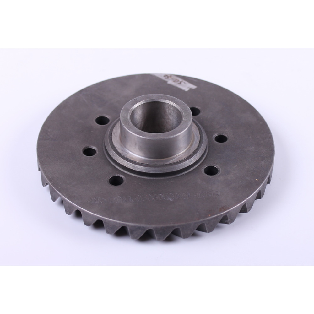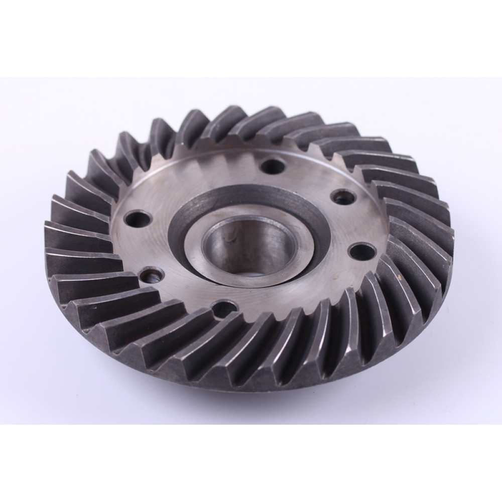 ШЕСТЕРНЯ КОНІЧНА ВЕДЕНА ГОЛОВНОЇ ПАРИ ПЕРЕДНЬОГО МОСТУ JINMA 184/200/244/254 (184.31.185) — ефективна передача потужності та довговічність трансмісії. Ця шестерня є ключовим елементом трансмісії трактора Jinma, який відповідає за стабільну роботу переднього мосту та рівномірну передачу крутного моменту на колеса. Шестерня має висоту 58 мм, внутрішній діаметр 32 мм, діаметр шестерні 150 мм, посадковий діаметр під підшипник 45 мм та 30 зубів, що гарантує надійну фіксацію, точне зчеплення та стабільну роботу трансмісії навіть при інтенсивному використанні.