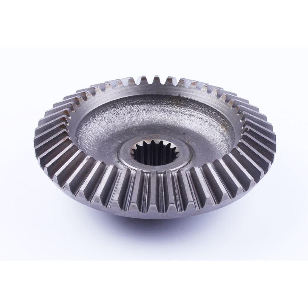 ШЕСТЕРНЯ КОНІЧНОЇ ПЕРЕДАЧІ ПЕРЕДНЬОГО МОСТУ ВЕЛИКА Z-42 FOTON 244, ДТЗ 244, JINMA 244/264 (FT254.31F.110a) — це надійна та зносостійка запчастина трансмісії, яка забезпечує ефективну передачу крутного моменту в передньому мосту та стабільну роботу приводу. Завдяки конічній формі та 42 зубам шестерня гарантує точне зачеплення з парною деталлю і рівномірний розподіл навантаження. Виготовлена зі сталі високої міцності, вона витримує значні навантаження та інтенсивну експлуатацію. Має зовнішній діаметр 175 мм, внутрішній 35/30 мм, висоту 62 мм та 16 шліців, що забезпечує надійну фіксацію у вузлі трансмісії.